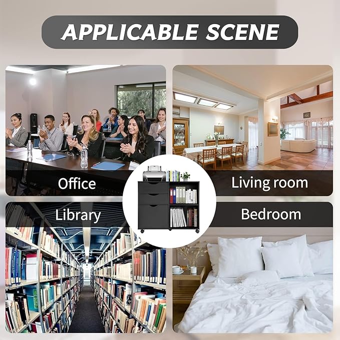 - EASY TO MOVE: The filing cabinet is equipped with four rollers, which can be rotated 360°, and the rollers have fixed brakes to prevent the file cabinet from sliding