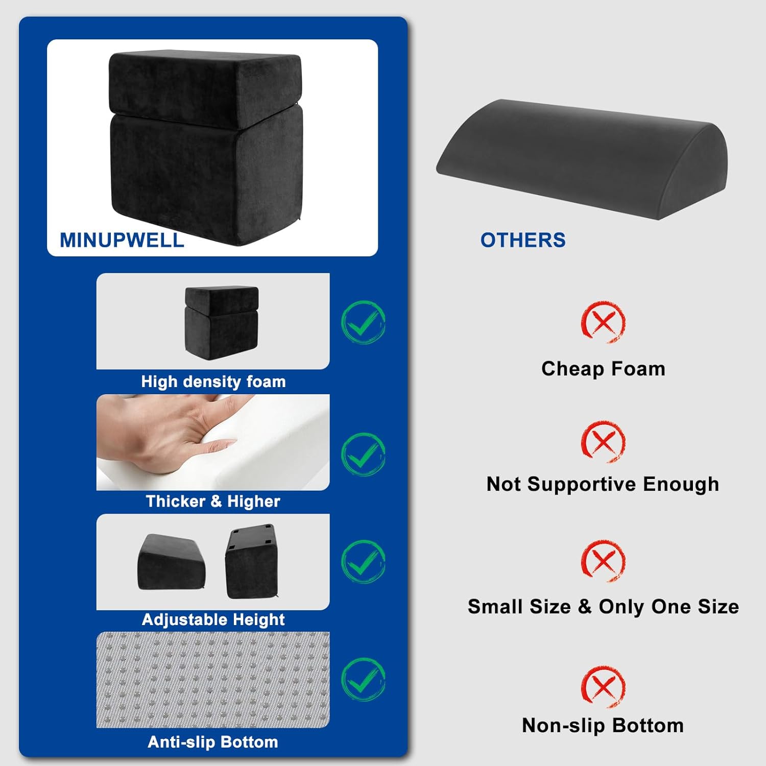 - 5. Built to Last (Unlike Hard Plastic Rests!) Ditch the clunky, uncomfortable footrests! Ours combines skin-friendly velvet with durable 25D foam that resists sagging. No creaks, no cracks—just silent, sturdy support that keeps its shape for years. Your feet (and back) will thank you!
