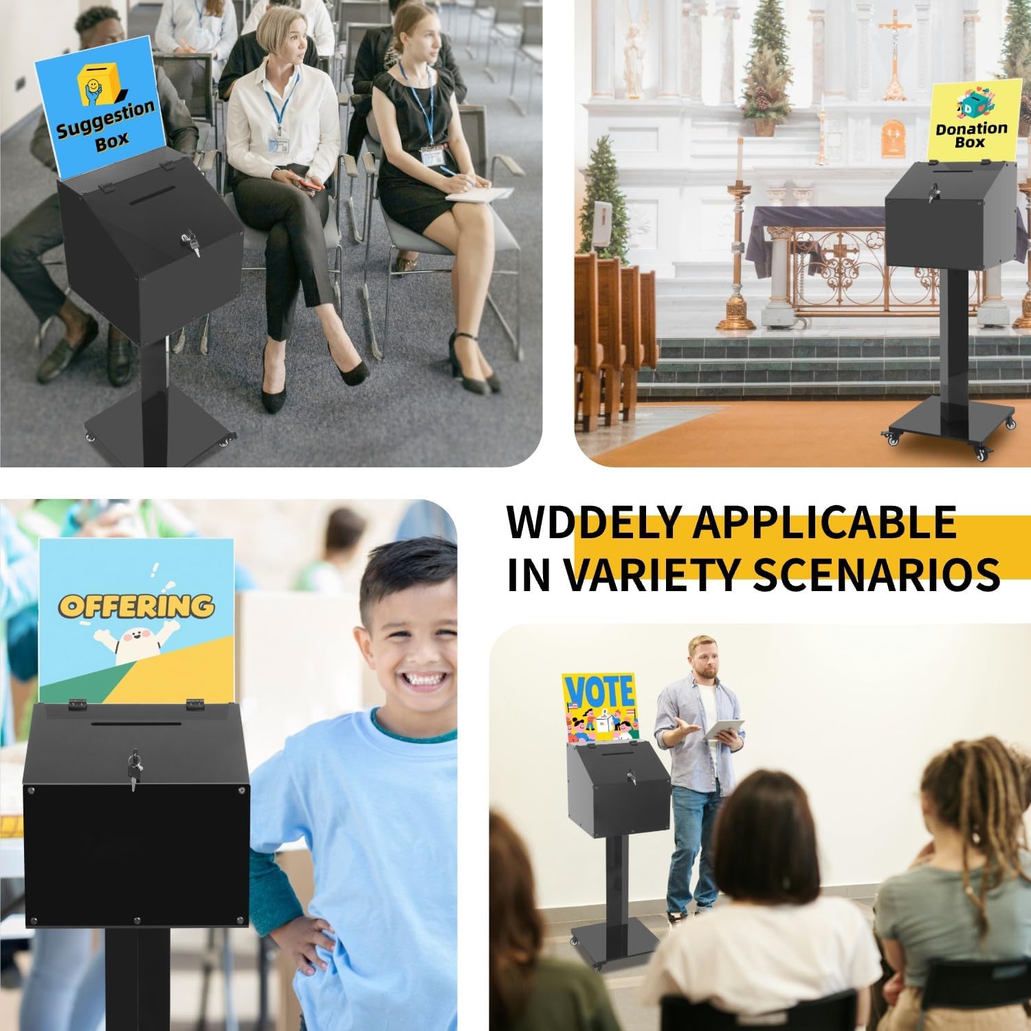 - Stable and Freestanding: The acrylic donation suggestion box's wide, sturdy base (38 5/6" height) ensures that it stands upright and remains stable, without the need for wall mounting or extra support
