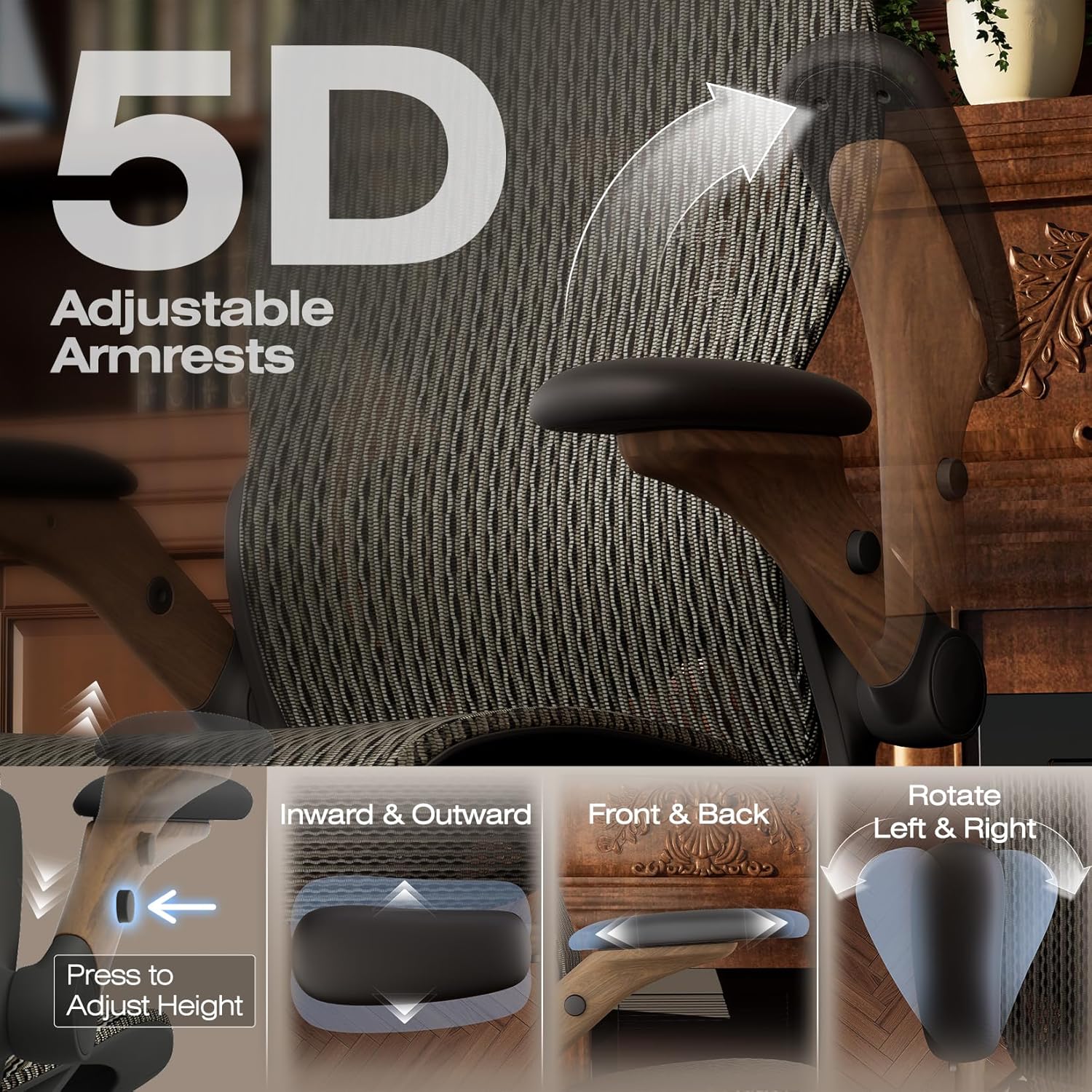 - 【Your All-Day Comfort Solution】 Premium Ergonomic Desk Chair with Footrest featuring dynamic 3D lumbar support, 5D Flip-Up Armrests, and extra-wide 3D breathable headrest, 2-position angle foot-rest, perfect for home office chairs seeking ultimate comfort