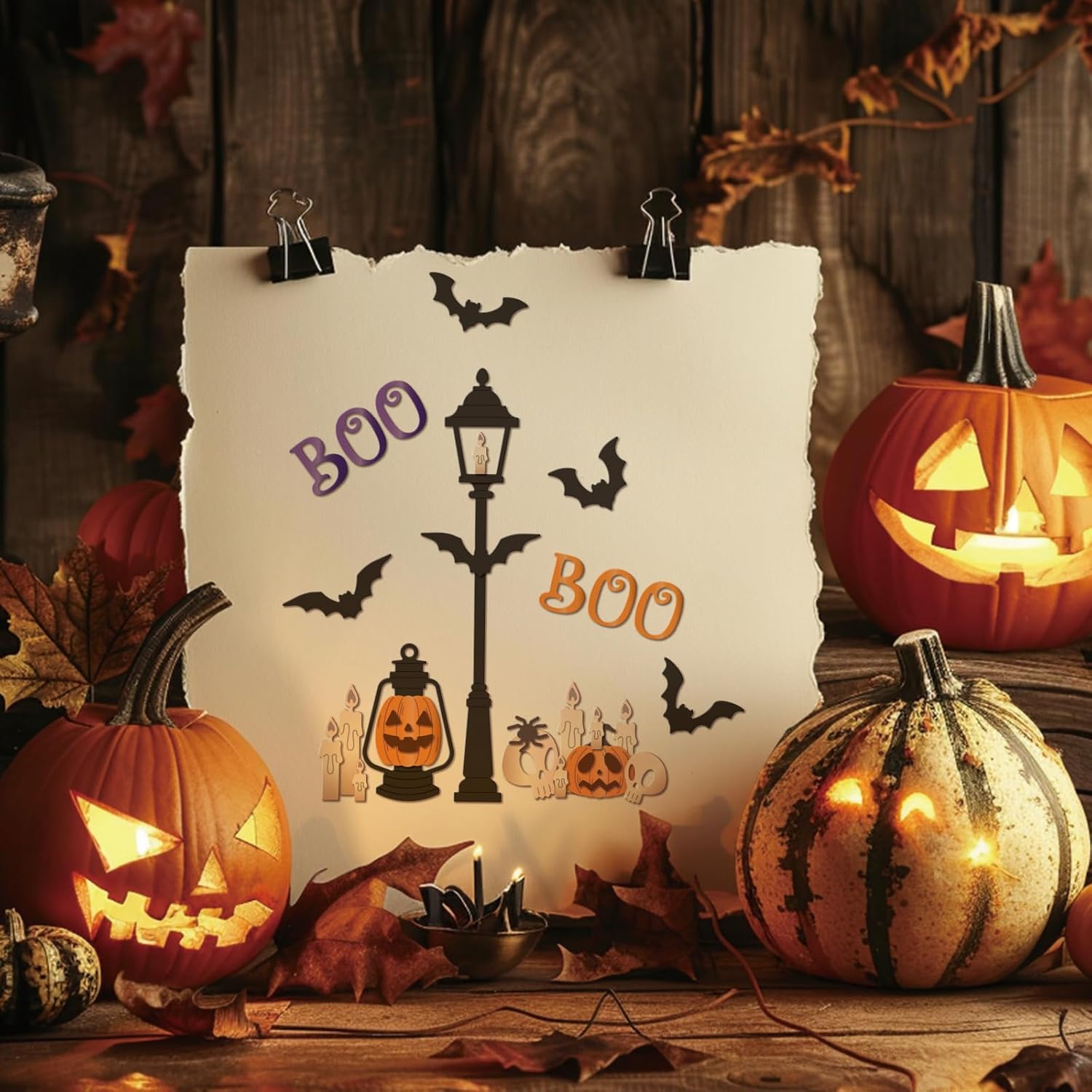 - Halloween Pumpkin Lamp Theme: The cut dies are designed with pumpkins, skulls, cat, lamps, webs, bats, bone patterns, you can use these cut dies to make unique card holder, multiple styles of die cuts can meet your DIY requirements