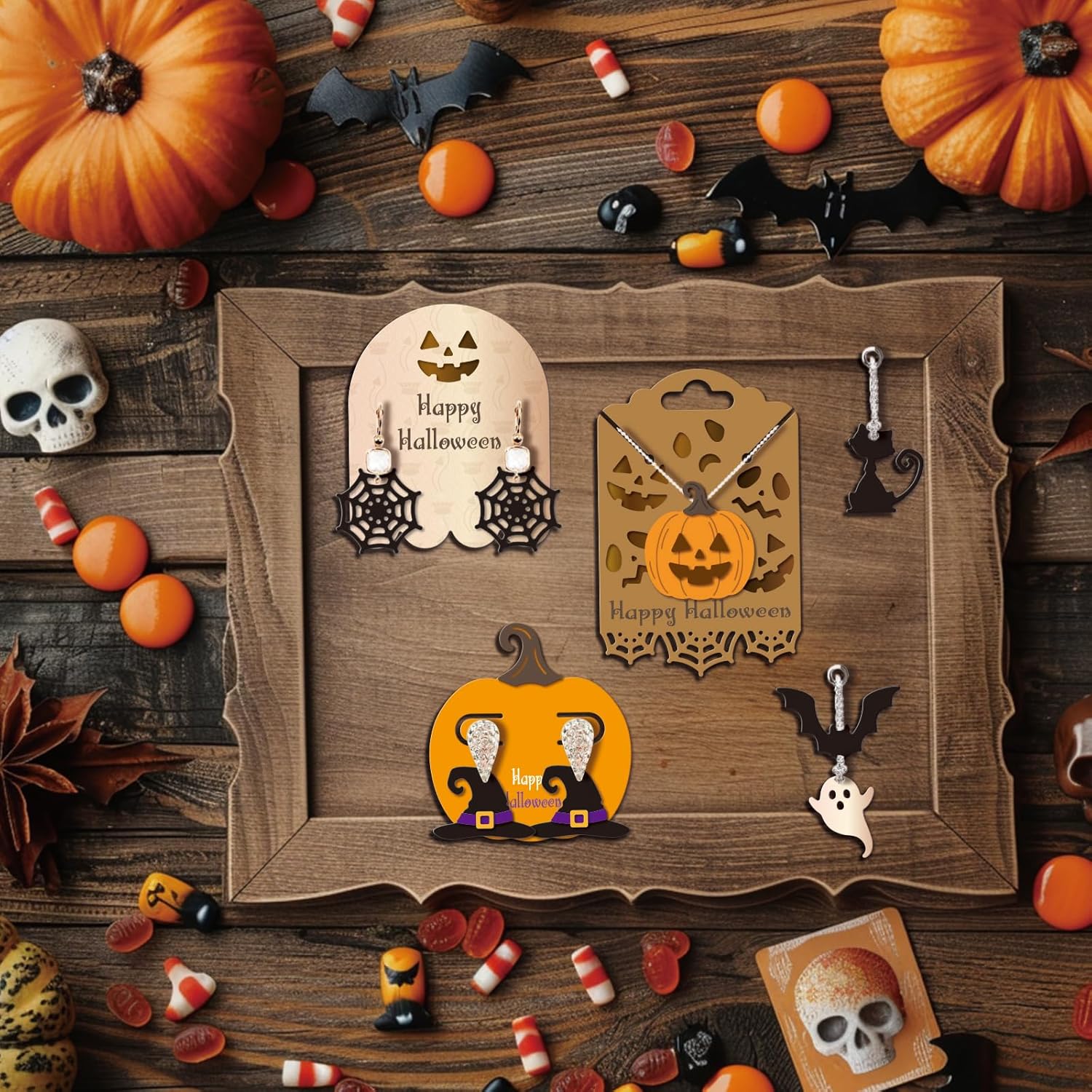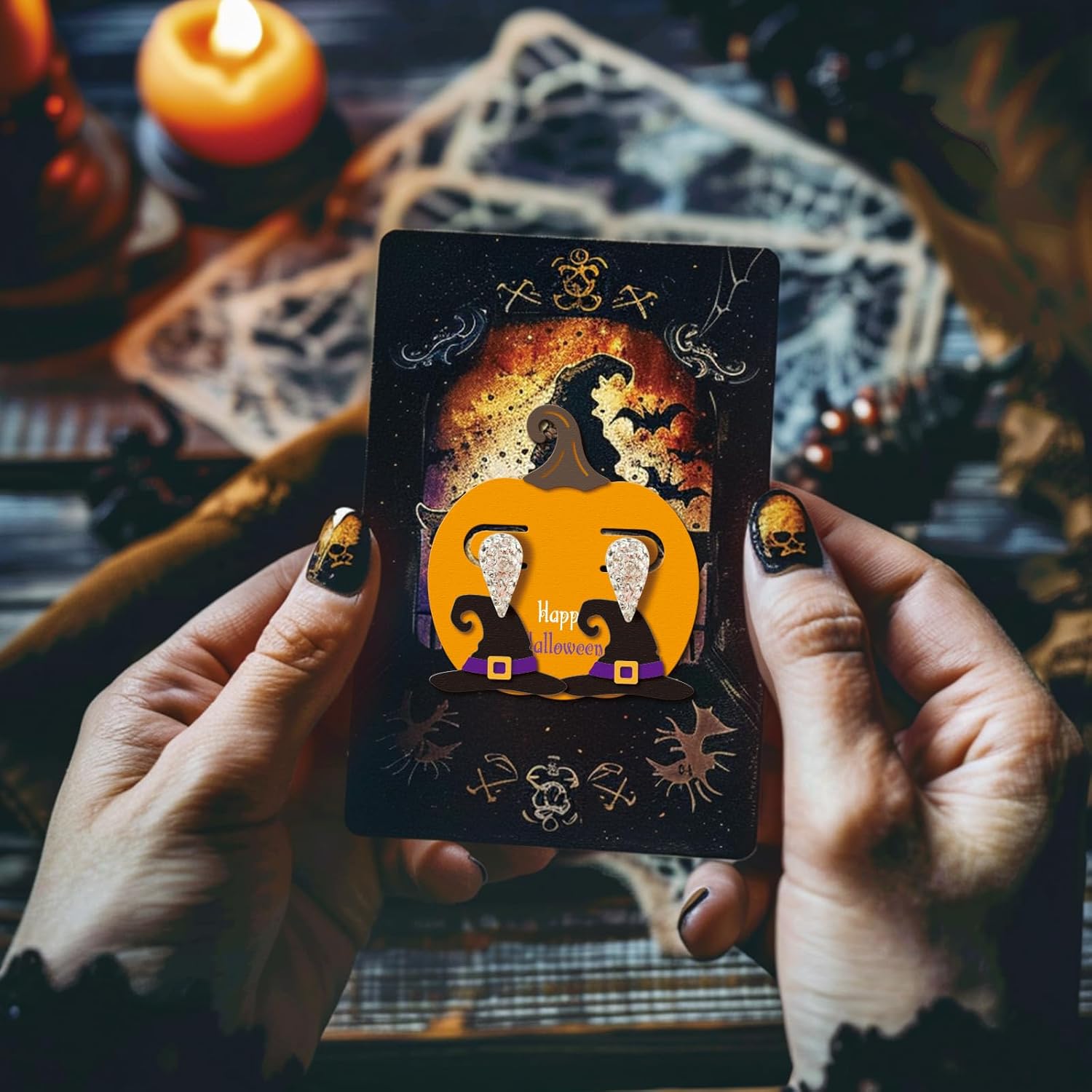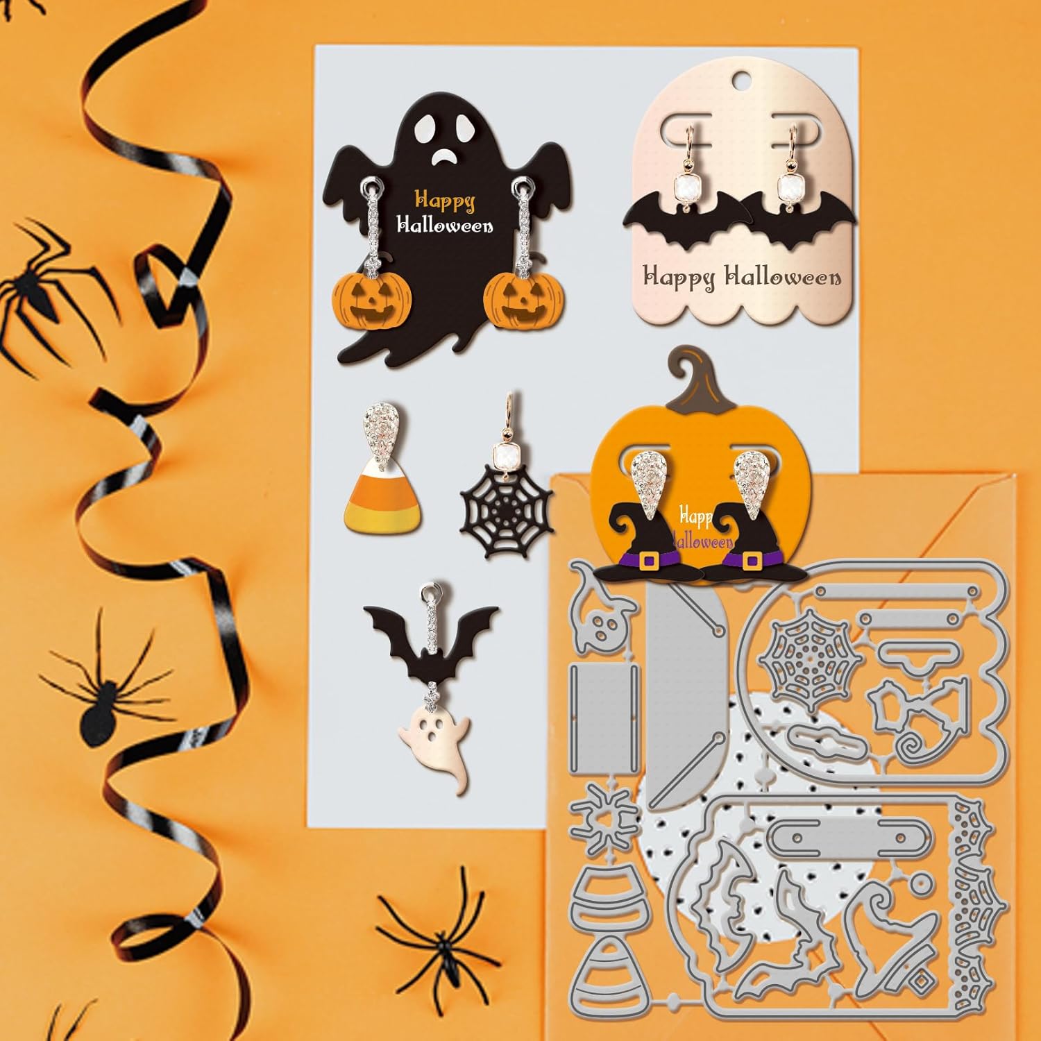 - Halloween Earring Card Theme: The cut dies are designed with Halloween earring card, cat, ghost, bat, hat, pumpkin, skull, candy patterns, you can use these cut dies to make unique card holder, multiple styles of die cuts can meet your DIY requirements
