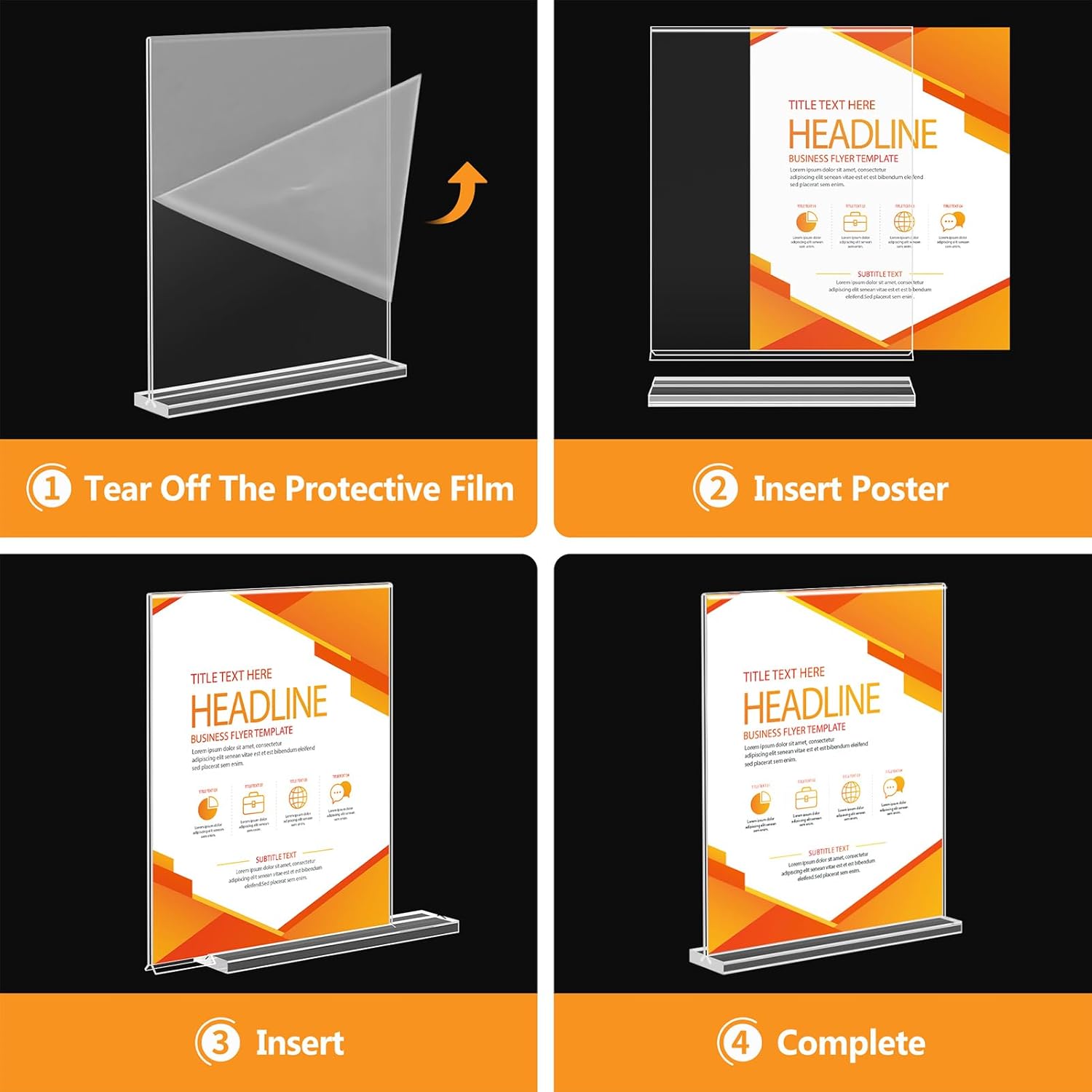 - Double-Sided Display Stands: Clear sign holder allows your flyer to be displayed and protected on both sides, the acrylic stand stands vertically, which greatly enhances the display effect of your content.
