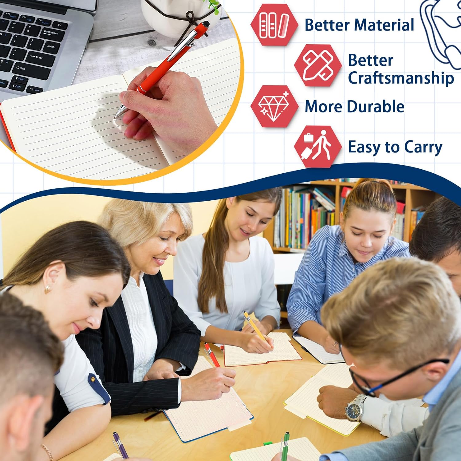 - Package Include: you will receive 24 pack journaling notebooks with sturdy cover and 24 pcs multicolor retractable pen; Each notebook size is about 8.3 x 5.1 inch, A5 size; These black ink writing pens can be clipped in the notebook pen holder, suitable for young girls and boys to carry and hold easily