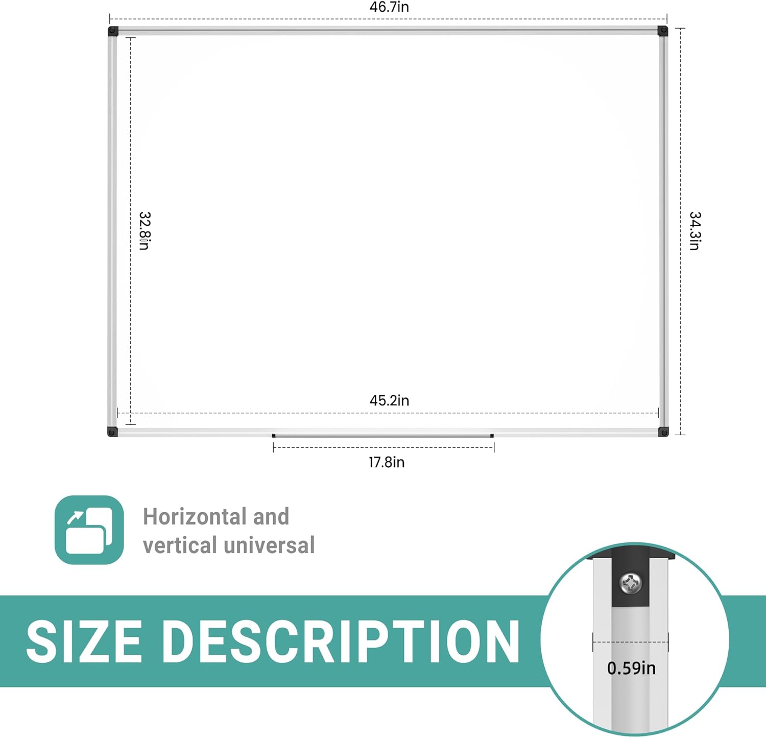 Magnetic Dry Erase White Board - 46 x 33 Inch Whiteboard for Wall - 4 x 3 Large Wall-Mounted Board with Silver Aluminum Frame, 1 Magnetic Eraser, 2 Pens, 1 Detachable Marker Tray, 6 Magnets