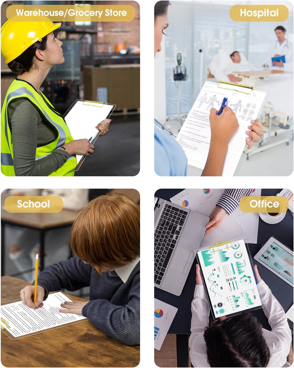 Honagu Acrylic Clear Clipboards, Transparent Plastic Clipboard with Gold Strong Clip Hidden Hanging Hole, A4 Letter Size Clipboards for Nurses, Art Student, Teachers,School & Office Supplies, 4PC