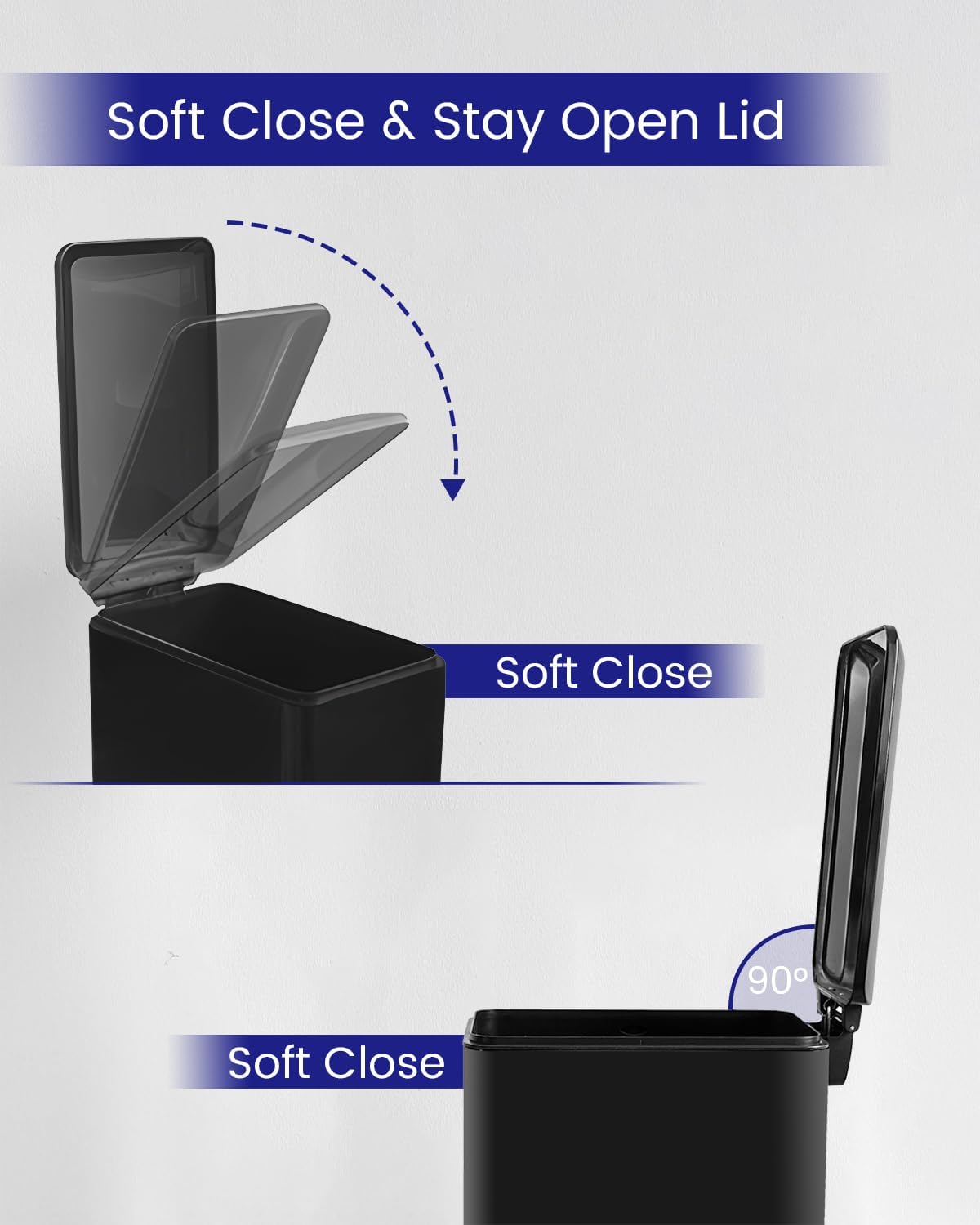 - Special Feature : Odor Seal, Quiet Close, Removable Bucket, Stain Resistant, Tall