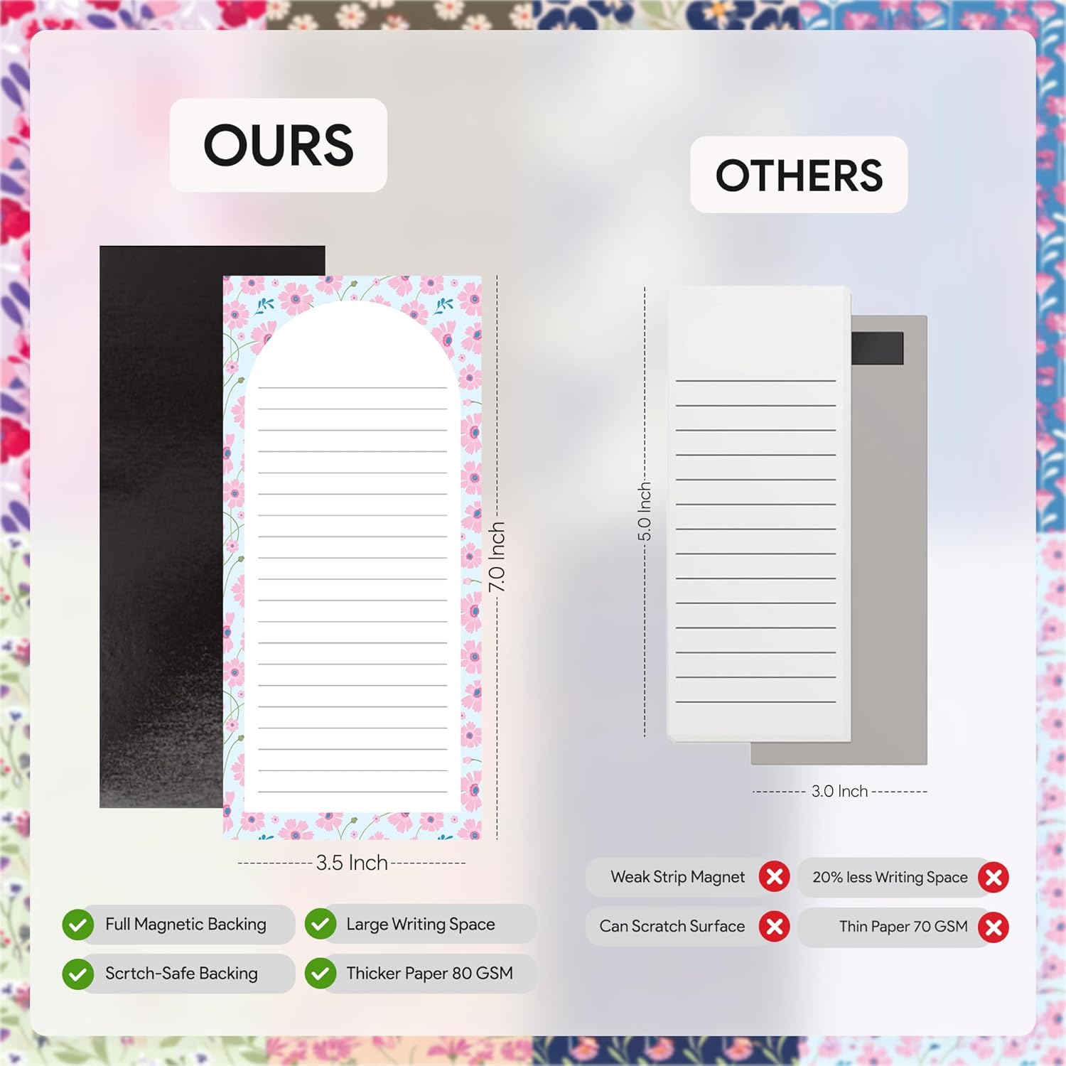 Magnetic Notepads – Notepads for Grocery List, Shopping List, To-Do List, Reminders -Strong Magnetic Back- Memo Notepad | 8 pack Medium | Floral Style