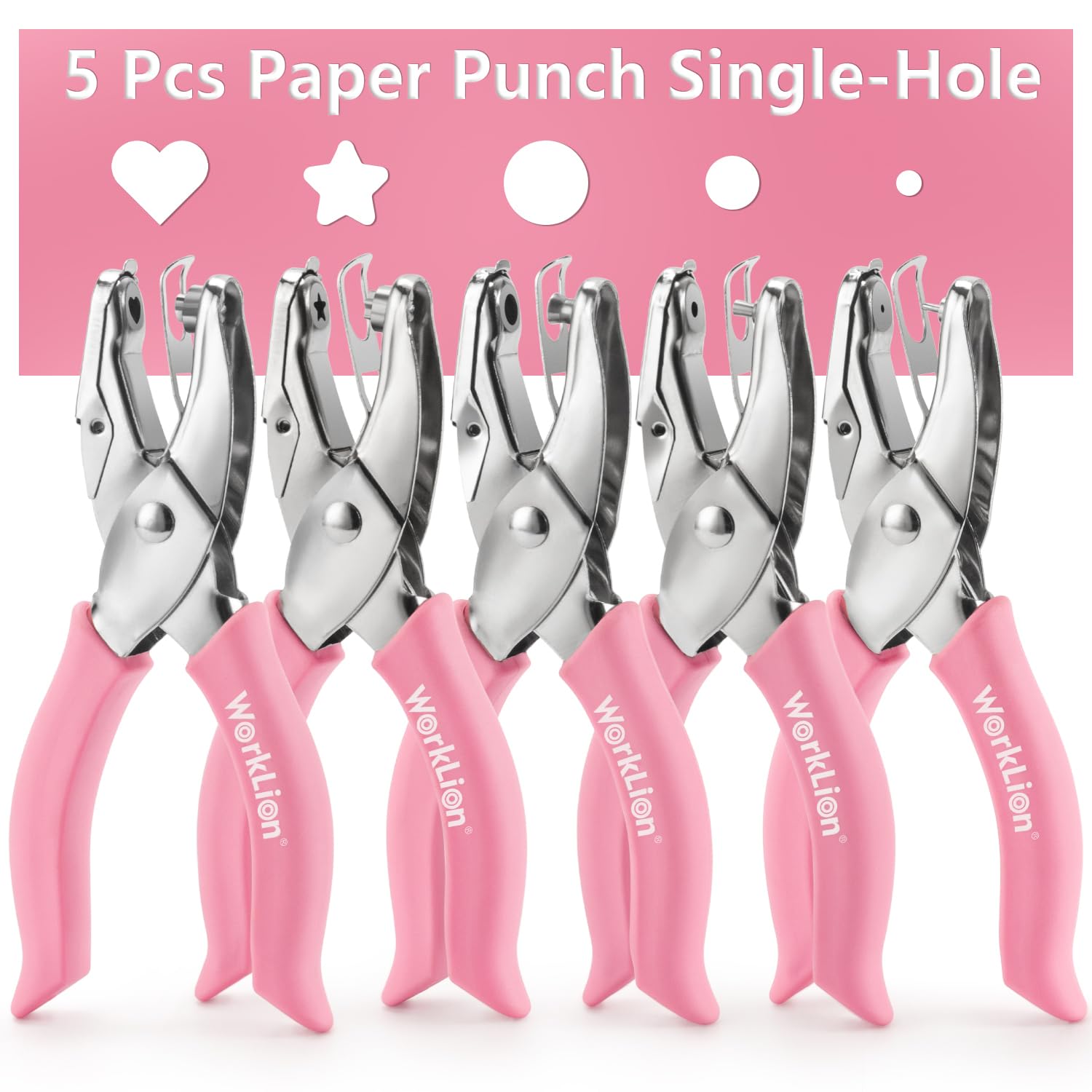 - 【5-in-1 Multi-Shape Punch Set】 Includes 1 heart punch,1 star punch,and 3 circle punches (1/4", 1/8", 1/16") in one kit. These lightweight hole punchers fit in pencil cases, backpacks, or craft kits. Take them to school, offices, or DIY workshops for on-the-go hole punching.
