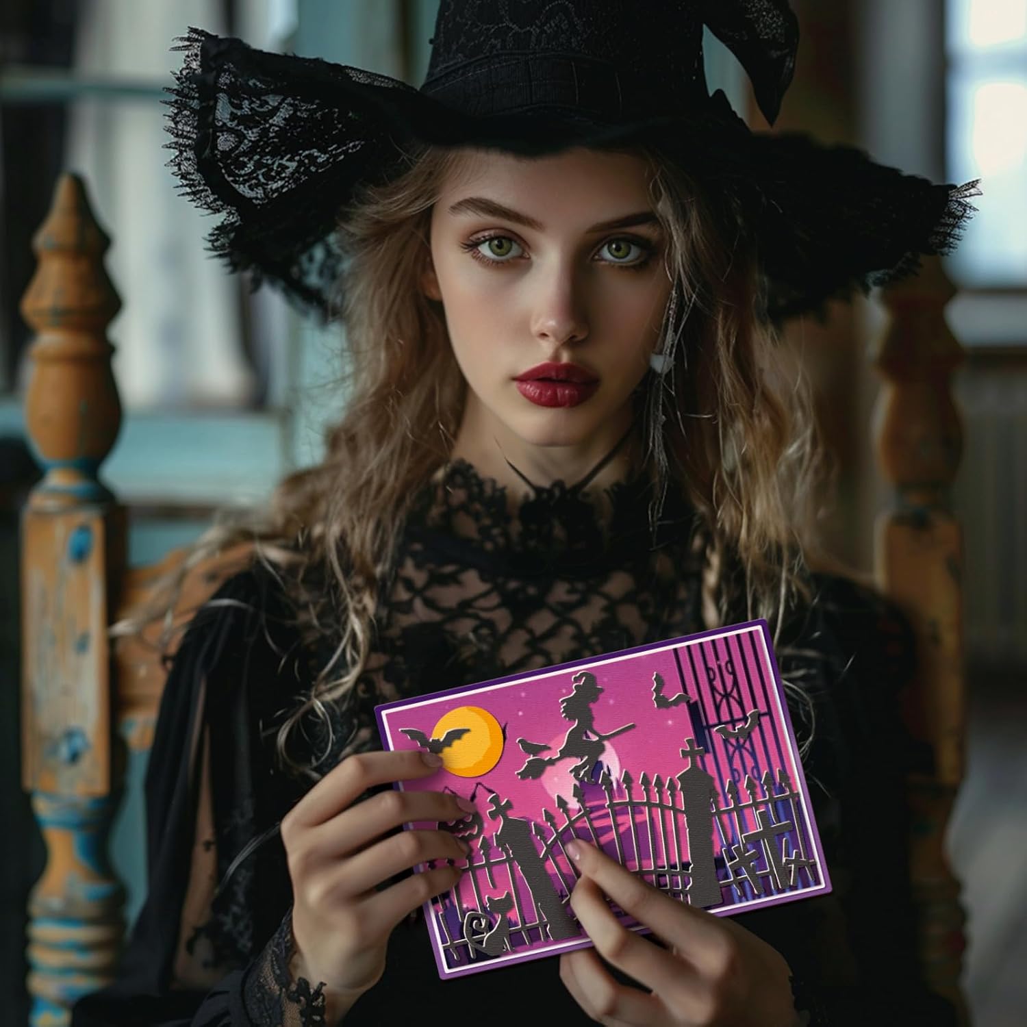 GLOBLELAND Halloween Gate Cutting Dies for Card Making Witch and Cat Cut Die for DIY Scrapbooking Journal Embossing Paper Craft Decor