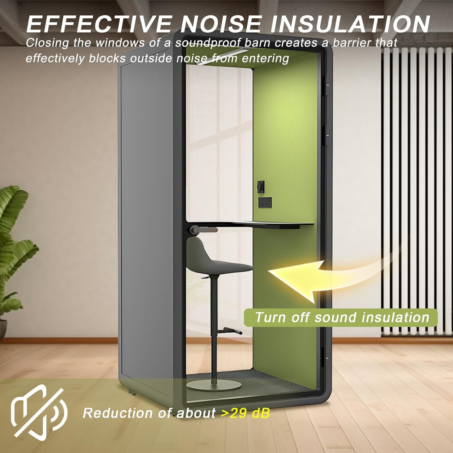 Office Sound Booth with Audio Privacy - Portable Soundproof Pod with Gray & Green Design,Phone Pod with Light,Ventilation,Socket for Phone,Singing,Work