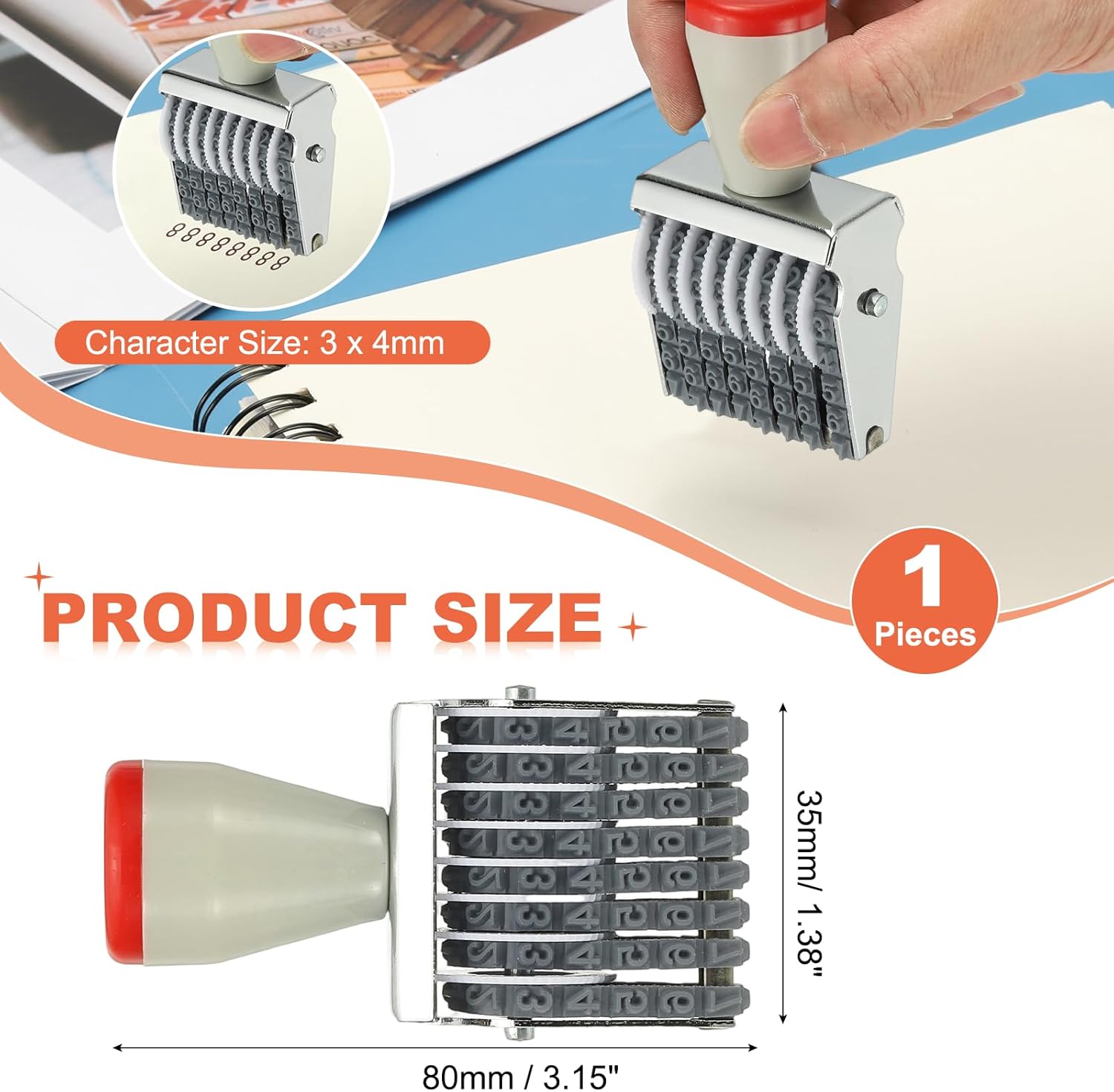 - Advantage: The intuitive dial design lets you change numbers quickly and easily. Use the smooth scroll wheel to easily set up quick custom multi-digit combinations, and start stamping. No complicated setup or tools required. Designed with a durable metal frame and rubber digits, this stamp can be used for a long time. Small and portable, the ergonomic grip ensures comfortable use even during long working hours.