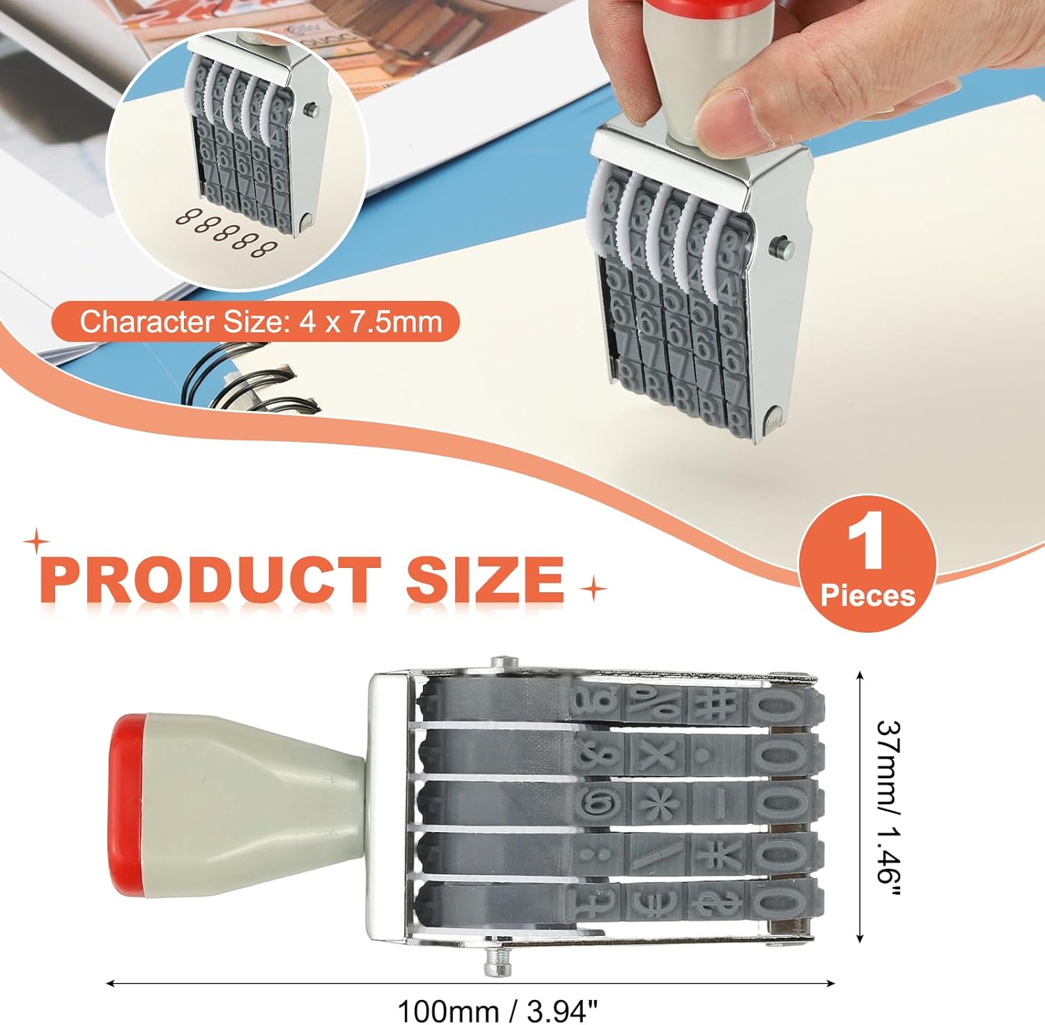 PATIKIL 5 Digit Number Roller Stamp, Adjustable Rubber Stamp Changeable Numerical Symbol Office Date for Business Creative Price Tag
