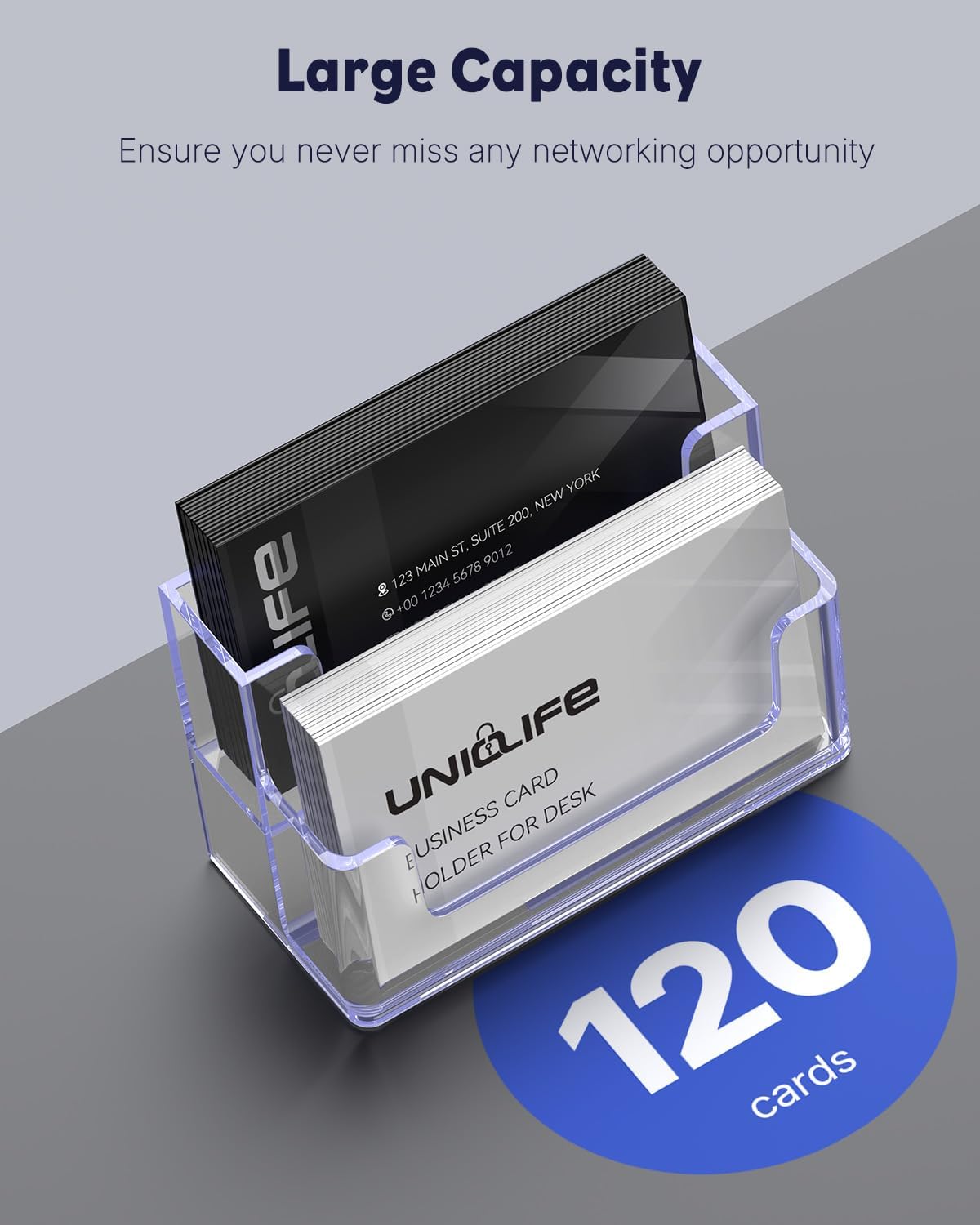 - Clear & Robust Acrylic: Crafted from reliable acrylic, the business card display stand combines sleek transparency with exceptional sturdiness. Crystal-clear design showcases every detail of the cards, adding a professional touch to any desk