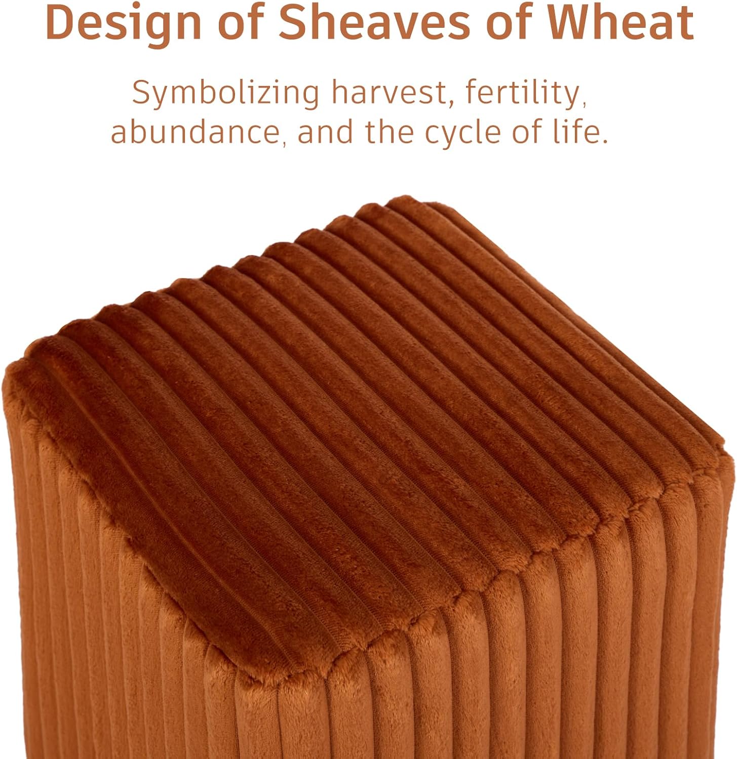 Modern Square Ottoman 2Pcs, Vertical Channel Tufted Foot Stool Ottoman, Velvet Upholstered Vanity Stool for Makeup, Bedroom, Living Room, Dark Orange