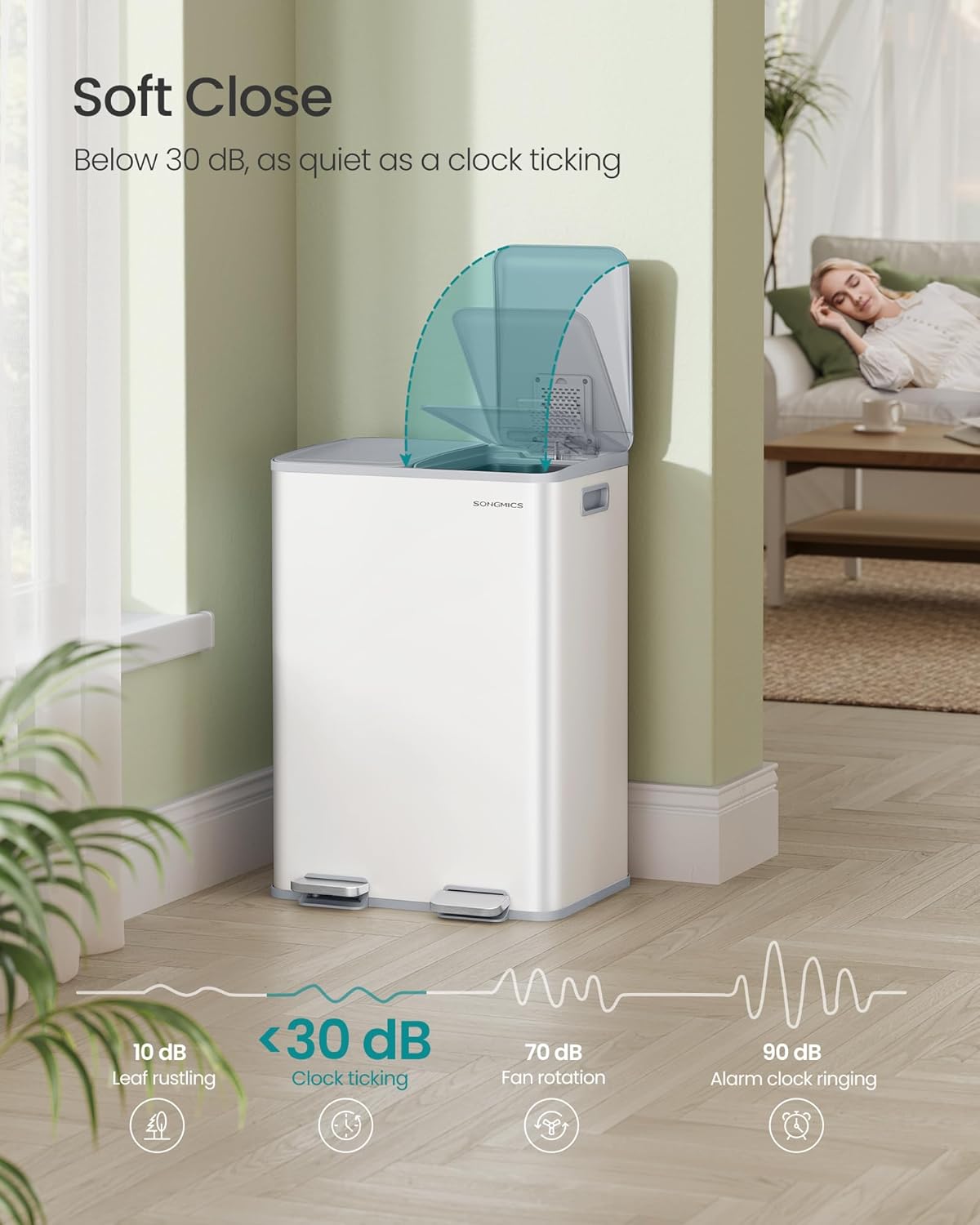 - Spacious: With a 2 x 8 gallon capacity, this garbage bin offers plenty of space for waste sorting. 15 trash bags are included. The trash bin is compatible with SONGMICS 8-gallon trash bags (Code H)