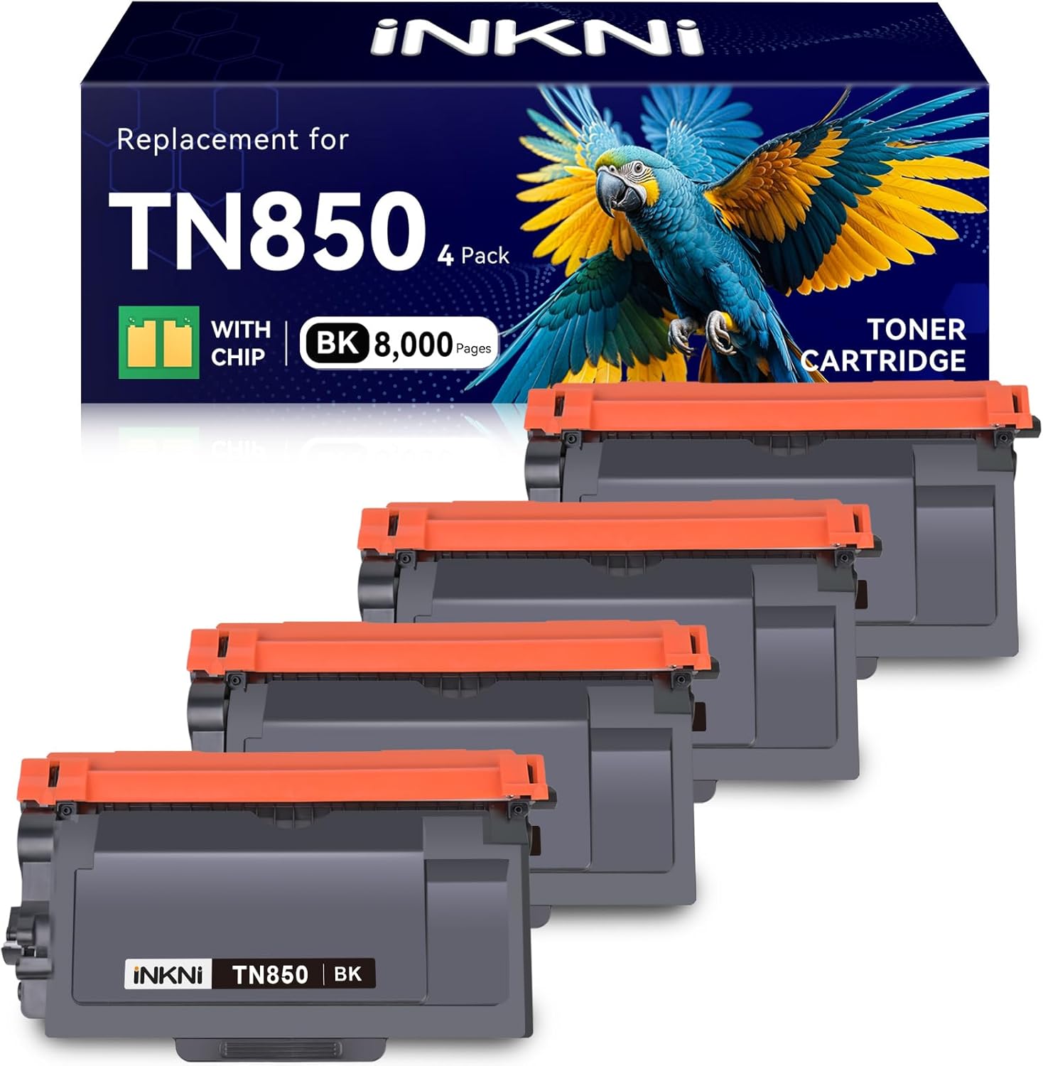 - INKNI TN850 Toner 4 Pack Pakege: TN850 black laser toner cartridges that can professional laser print quality.Each TN850 Toner cartridge up to 8,000 pages. Total print 32, 000 pages.