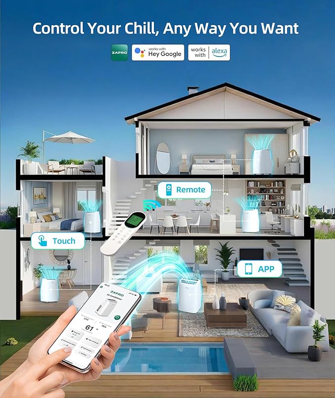ZAFRO 10000 BTU Portable Air Conditioners (6000 BTU SACC), AC Unit for Bedroom with Drainage-free Cooling, Fan & Dehumidifier, 47dB Quiet, 24H Timer, APP Control/Remote/LED Display