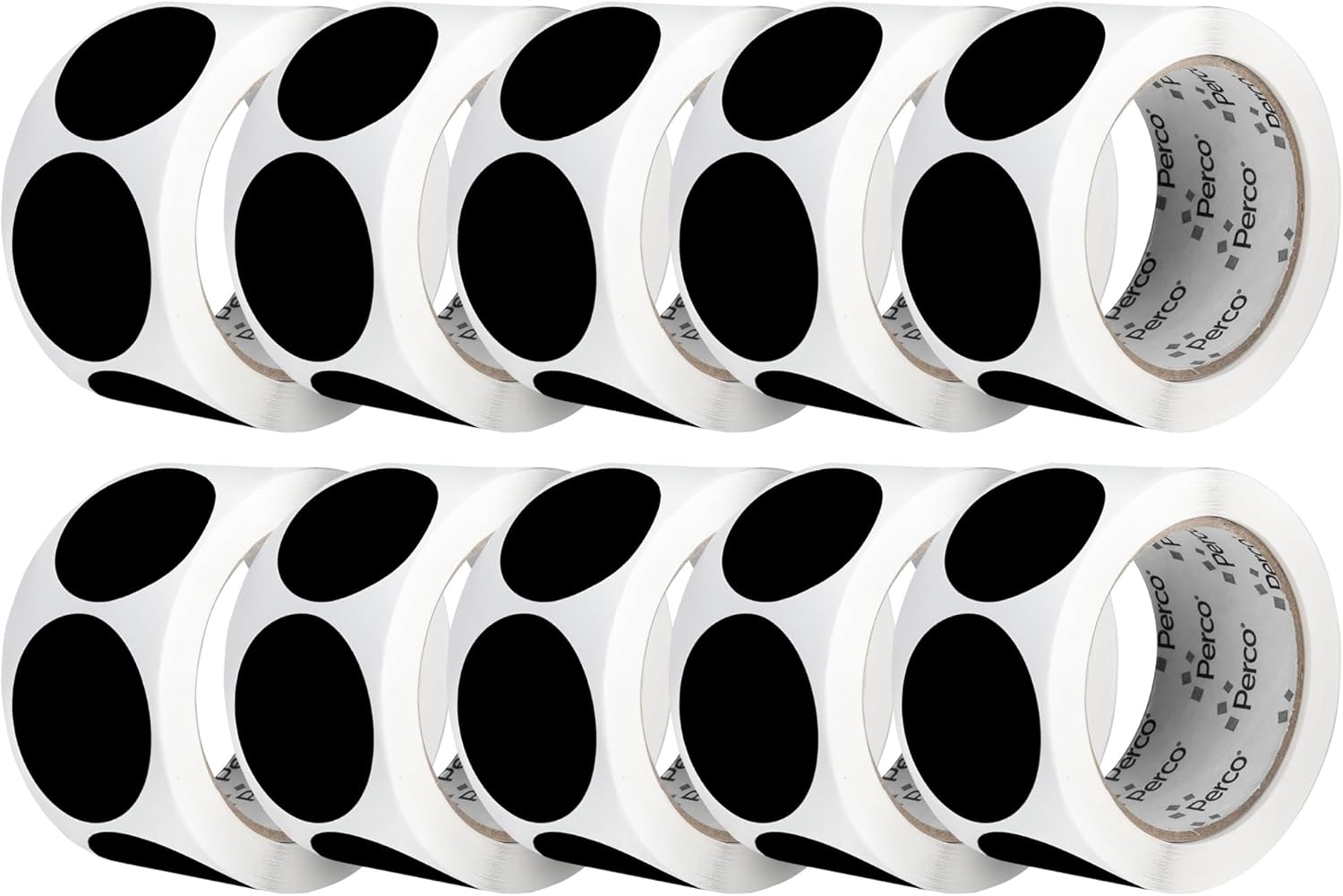 Perco Black 2-Inch Perforated Circle Dot Sticker Labels — 10 Rolls, 5,000 Round Stickers — with Permanent Adhesive for Organizing, Color Coding, Bin Labeling, Packaging Alerts—Made in USA