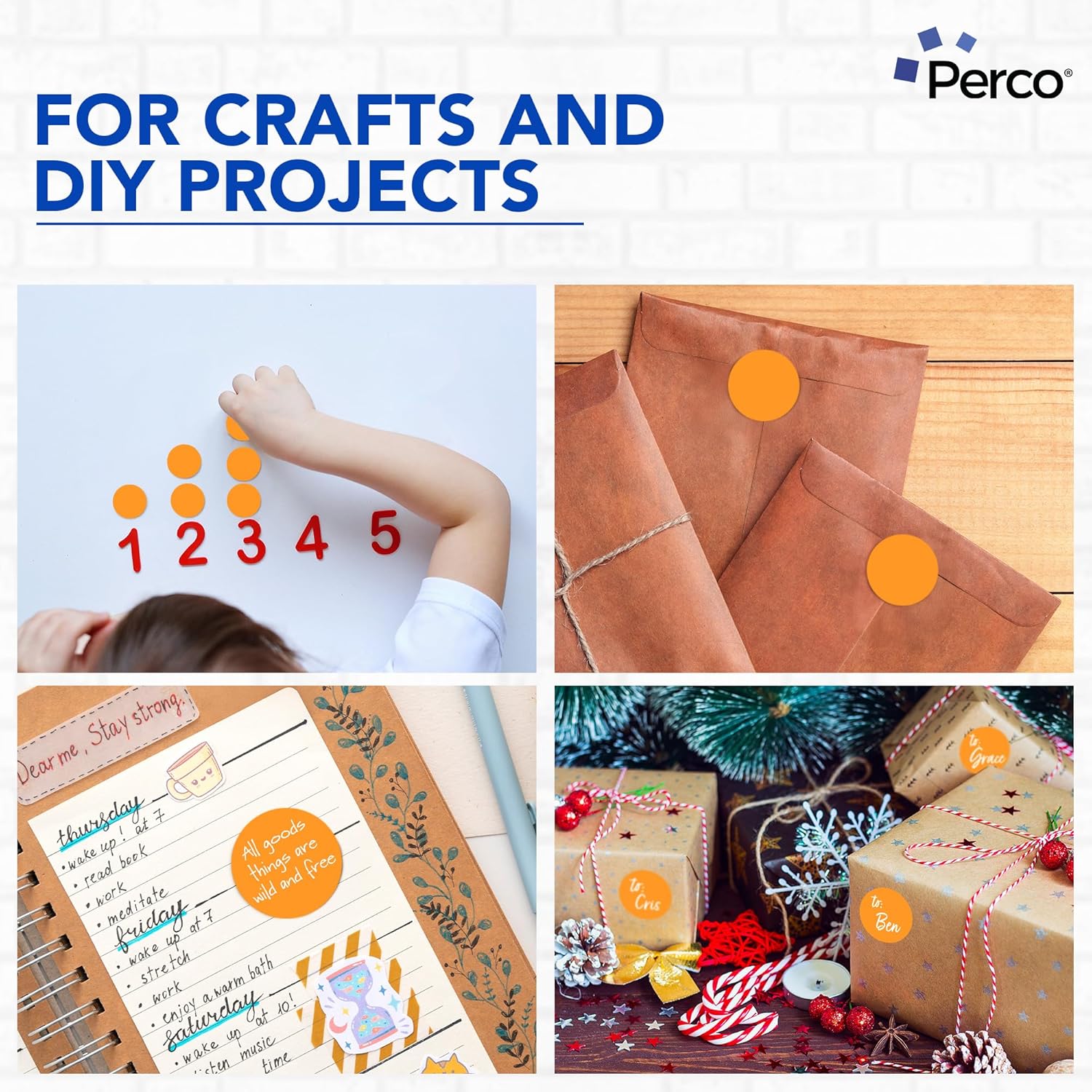 Perco Fluorescent Orange 2-Inch Perforated Circle Dot Sticker Labels — 10 Rolls, 5,000 Round Stickers — with Permanent Adhesive for Organizing, Color Coding, Bin Labeling, Packaging Alerts—Made in USA