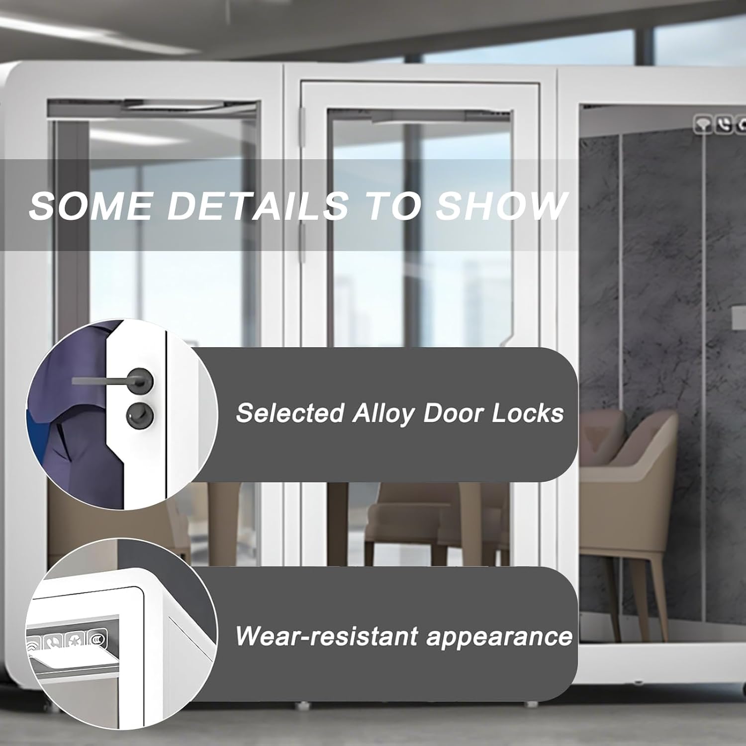 - High-quality Material Technology: professional sound insulation materials are used to build the main body, the alloy door lock is sturdy and durable, and the appearance has wear-resistant characteristics, ensuring long-term reliability and beauty