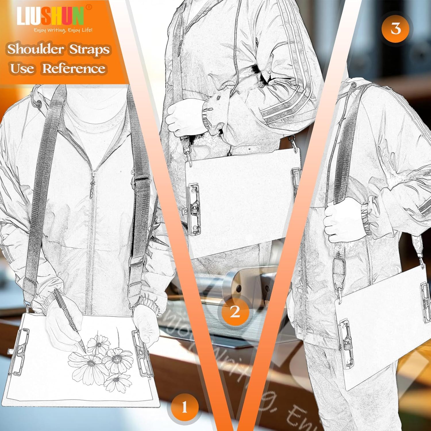 - 【Portable A4 Size】: Size: 9 × 12.6 Inch metal clipboard, Perfect for A4, letter size (8.5 in × 11 in) or downsize paper sheets documents. Shoulder strap adjusted maximum length 57 inches, suitable for a wider range of body types and usage scenarios.