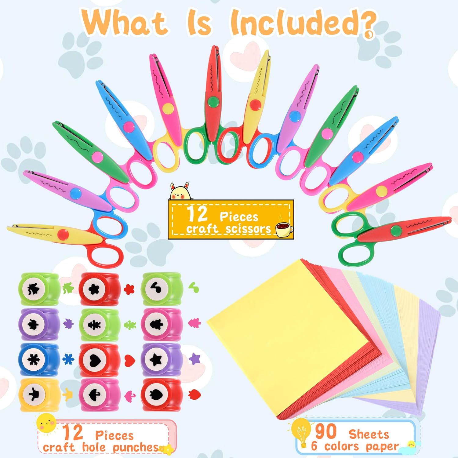 - Durable and Reliable: Made from durable materials, our craft scissors and hole punches are built to last. The 90 sheets of vibrant craft paper are easy to cut and punch, making this kit ideal for daily use at home or in the classroom