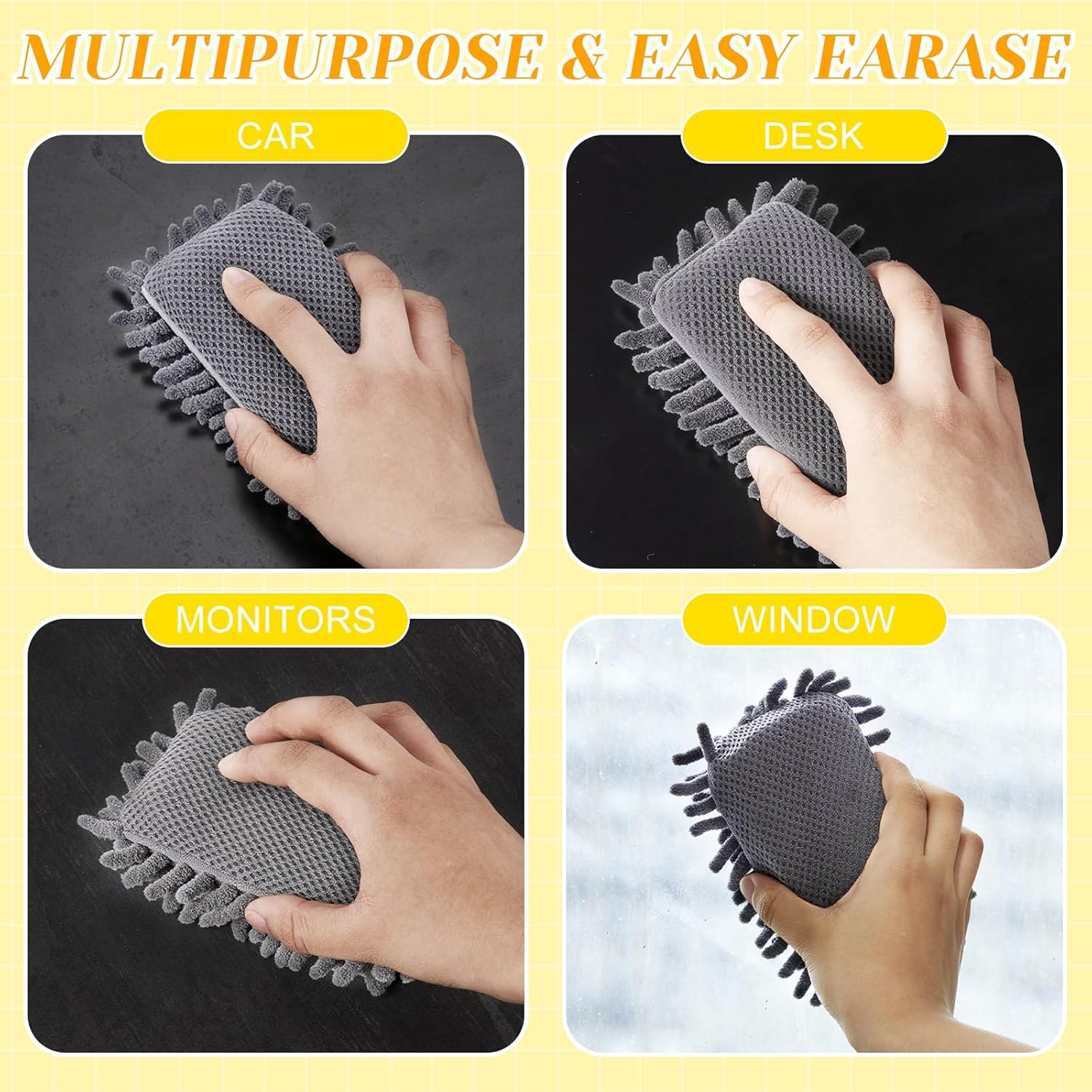 - What You Will Get: comes in 4 pieces microfiber shag dry erase board erasers, 1 blue, 1 yellow, 2 gray; Dual surface design brings a different touch to whiteboard erasers, adds a creative spin to your office conference room or classroom; Enough quantity for your daily use and replacement