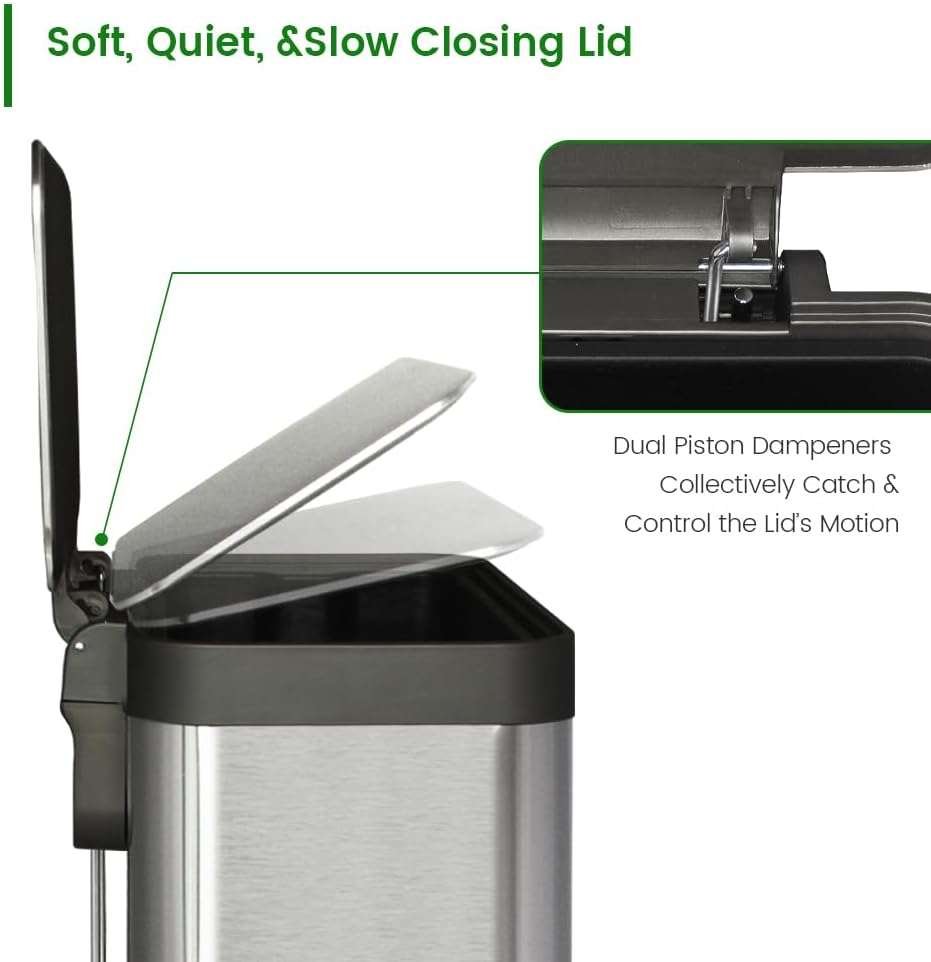 - Soft Close & Stay Open Lid: Equipped with a soft-close mechanism and a stay-open feature, this larger garbage can offers smooth operation and hands-free convenience, perfect for busy kitchens, offices, or commercial spaces.