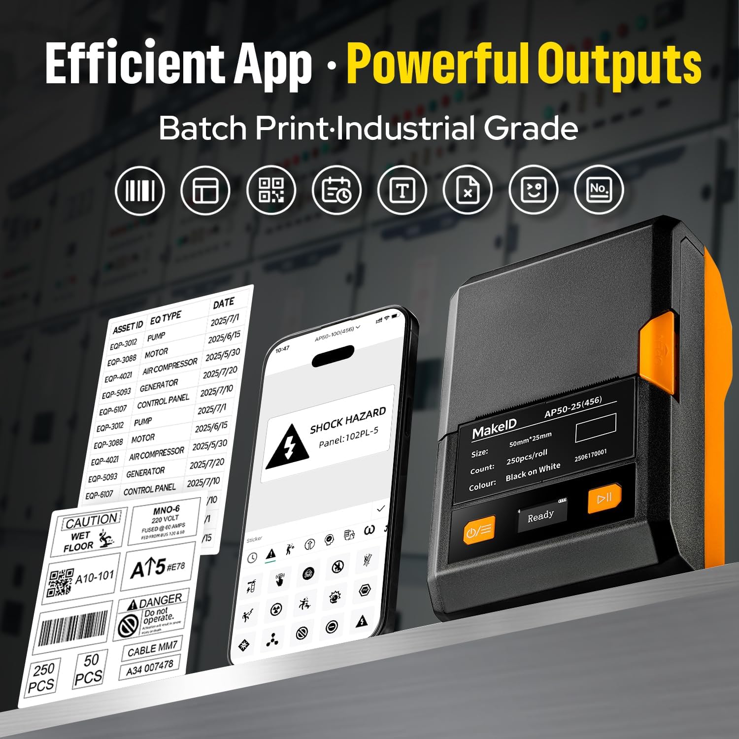 Makeid EP53 Portable Industrial Label Maker, 2" Print Head Bluetooth Label Printer, Mobile APP & PC Editor Compatible, 2000mAh Li-ion Battery, Come with 1" H x 2" W Label for Job Sites