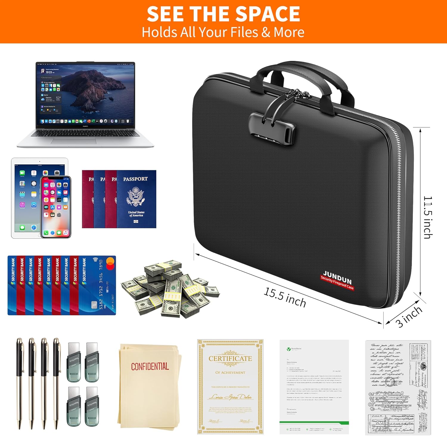 - Dual Security & Portability:Safeguard contents with a combination lock (key-free) and tamper-proof dual zippers.The reinforced top handle and detachable padded shoulder strap offer carrying flexibility—reduce shoulder strain during travel while enabling quick hand-carry shifts.Ideal for business trips, offices,and emergencies: documents stay protected yet accessible