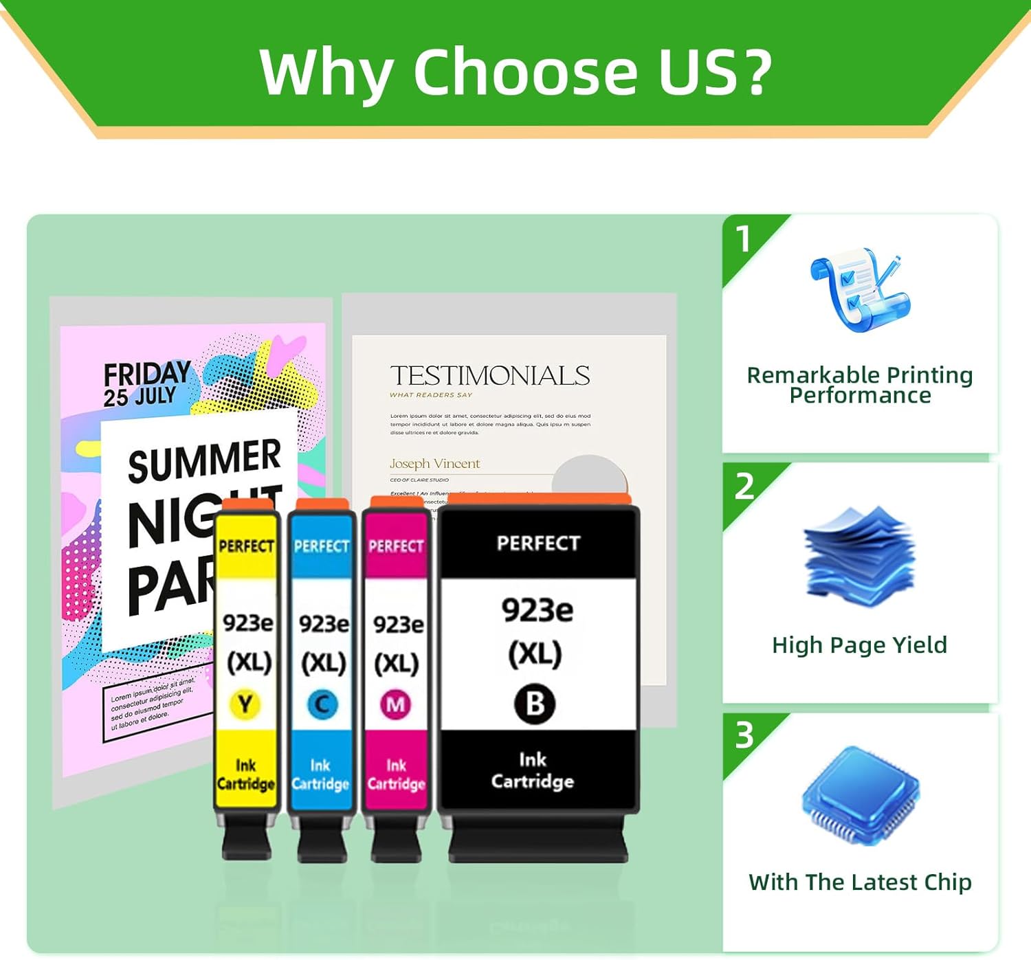 - Package Content: 923XL 923e Ink Cartridges Combo Pack (1 × 923e Black, 1 × 923e Cyan, 1 × 923e Magenta, 1 × 923e Yellow Ink Cartridge)