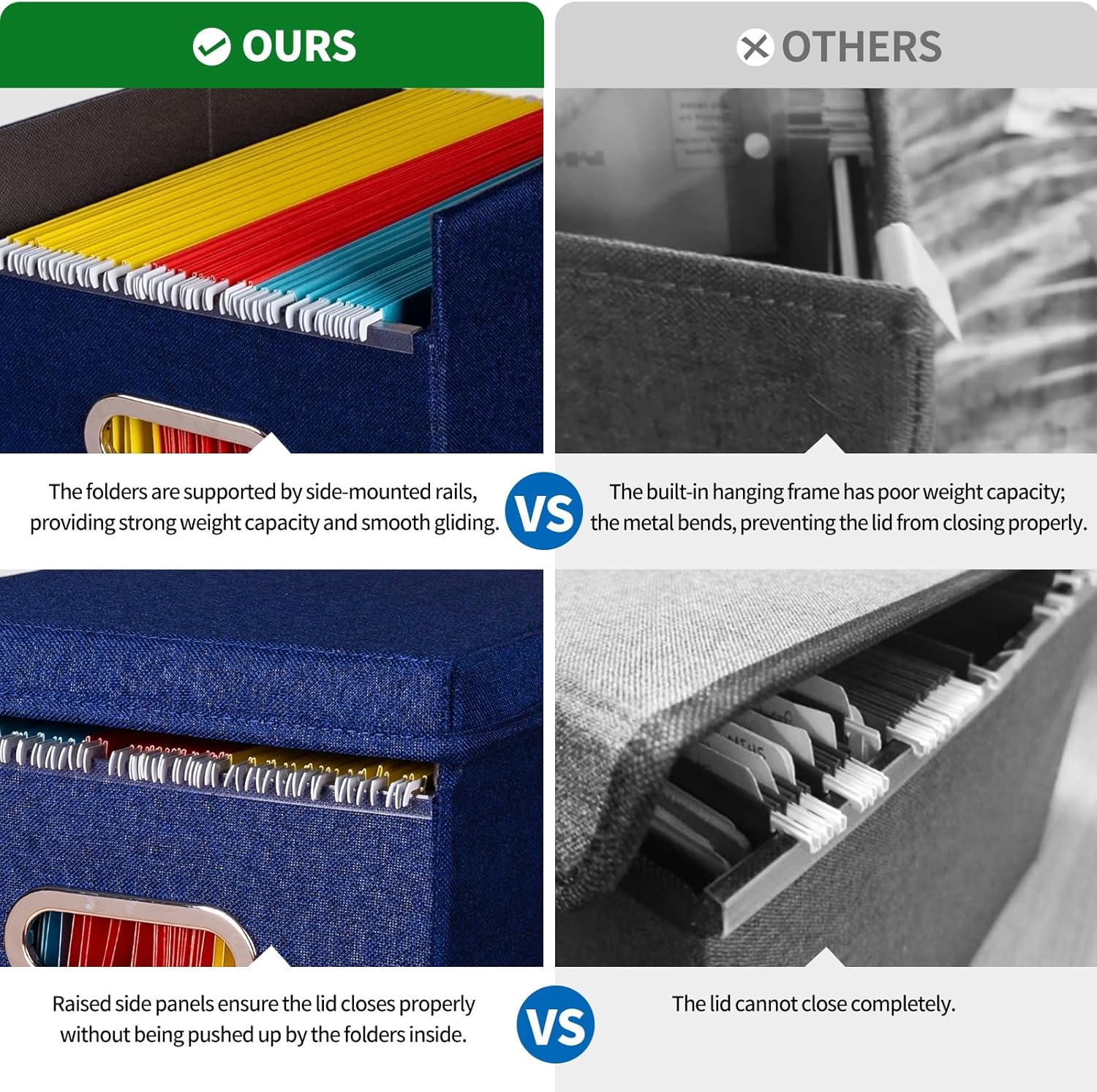 - Exclusive Lid-Friendly Design: Unlike standard file boxes, our unique raised-side design prevents file tabs from bending when the lid is closed. Features smooth PVC rails on front and back for effortless sliding, perfect for hanging file folders without damaging tabs