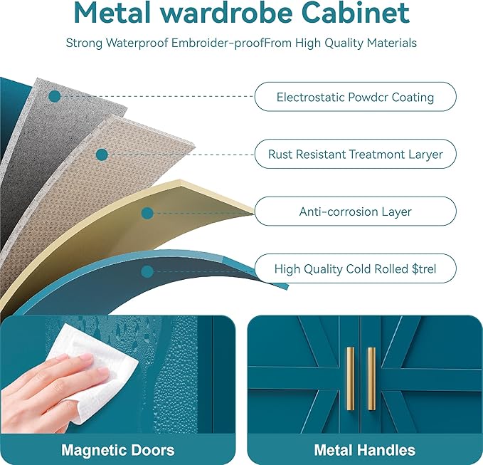 - Easy Assembly:With simple step-by-step instructions and labeled parts, this metal armoire unit is a breeze to assemble. Wipe clean with a dry cloth for maintenance. If you have any questions about our wardrobe or their operation procedures, please contact us