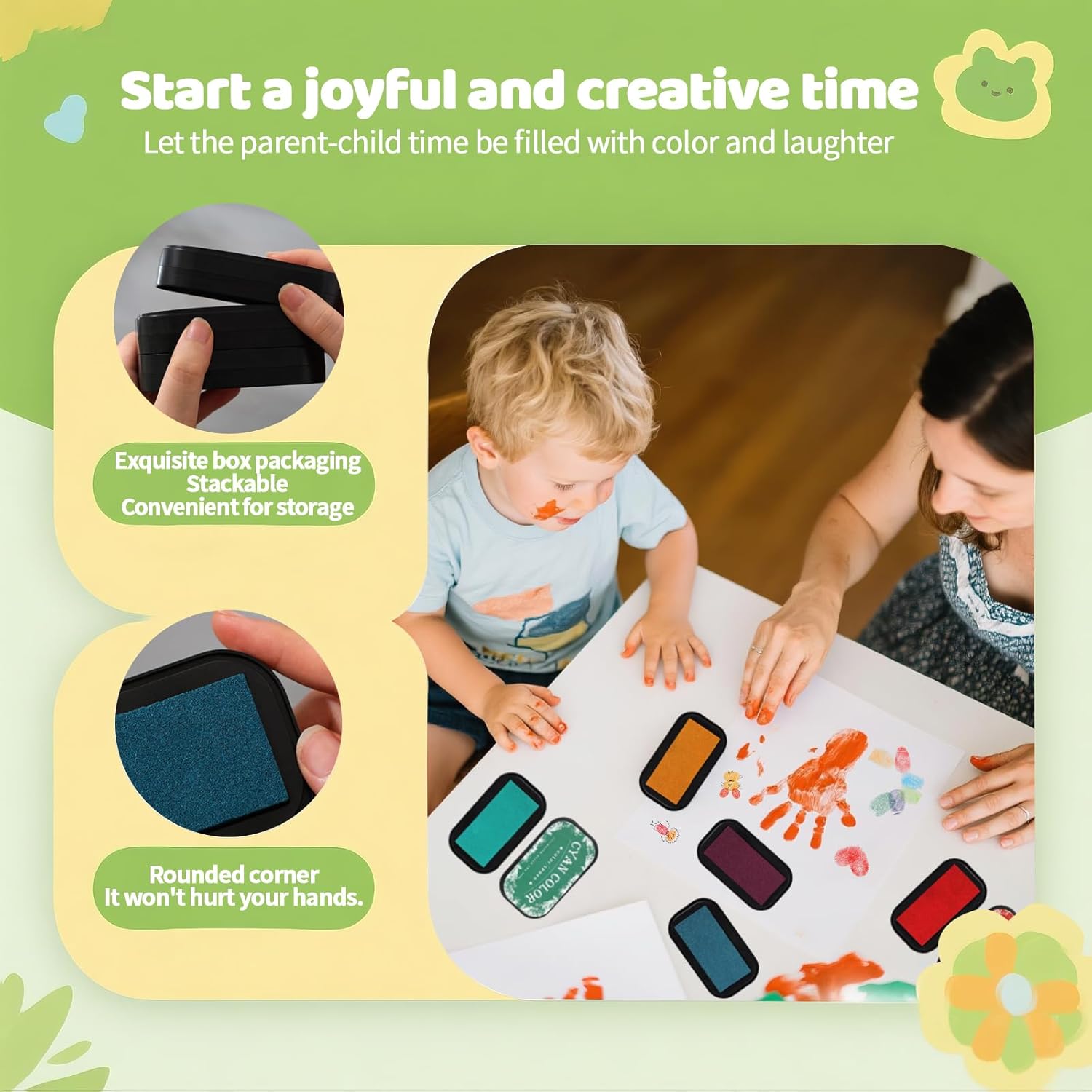 - 【Package Includes】You will receive 12 pieces ink pads in 12 colors,Each color is packaged in a separate box and covered with plastic film, which can effectively prevent ink leakage and durability .larger size 12 colors ink pad gives your kids a chance to let their imaginations really roam!