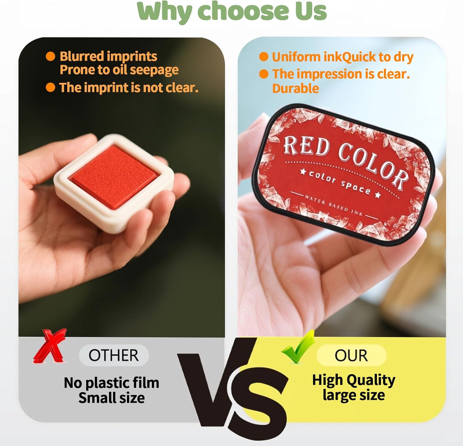 - 【Wide Applicaton】: This ink pads for stamping paper,wood,clay,fabric,or even skin, Large size of square Craft Ink Pads is a great application for fabric, wood, paper,card-making, posters, notepads, journals and in kindergarten for crafting, stamping, scrapbooking,handprints,footprints and any DIY projects.Also can as a gifts Suit for kids,teens and adults