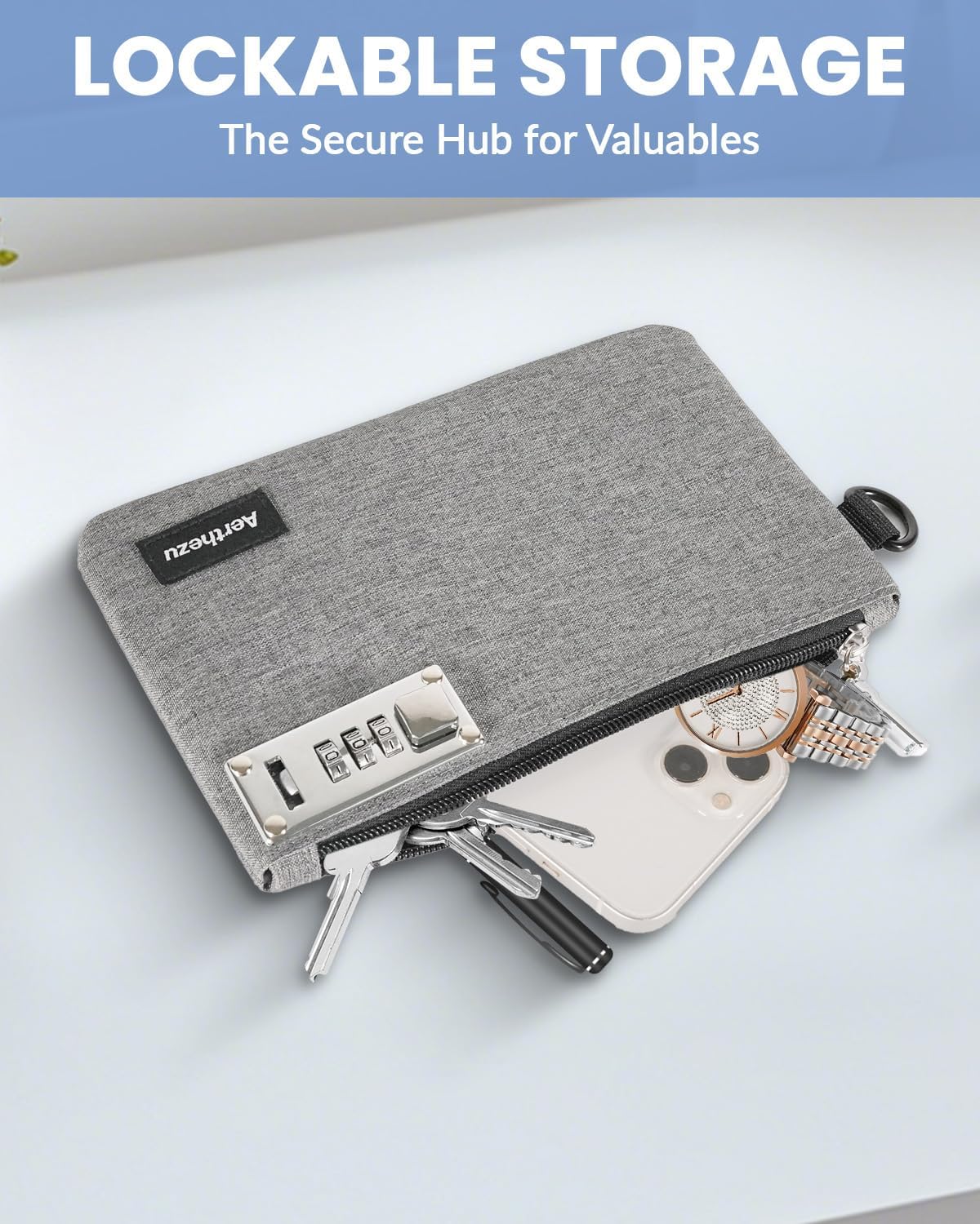 Money Bag with Lock, Aerthezu Cash Locking Bags with Zipper, Travel Safe Lockable Bank Bag, 2 Pack,Black & Grey - Size:5x8 Inches