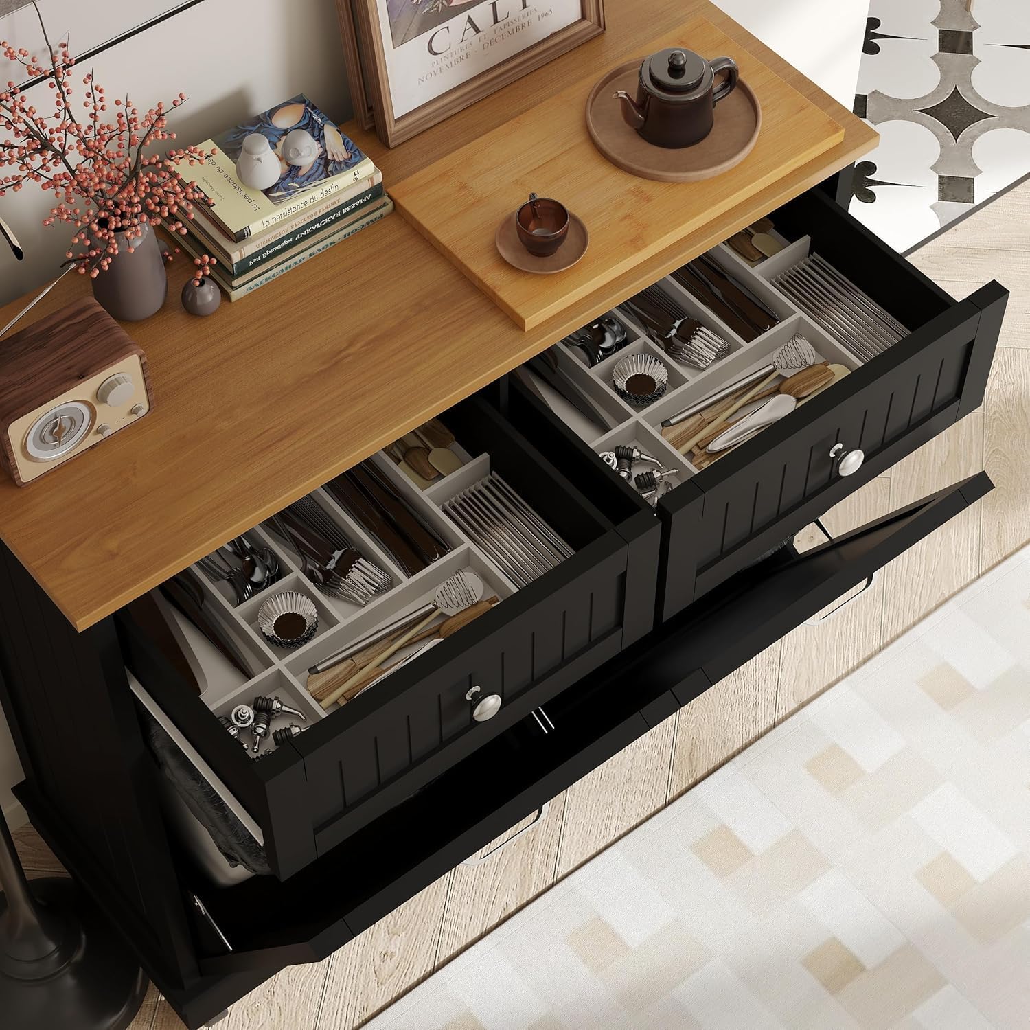 - Thoughtful Farmhouse Touches: Elevate your space with classic striped design and crisp black finish. Metal handles add a polished look, durable enough for daily use. Compact yet spacious, it tucks neatly into corners without sacrificing storage