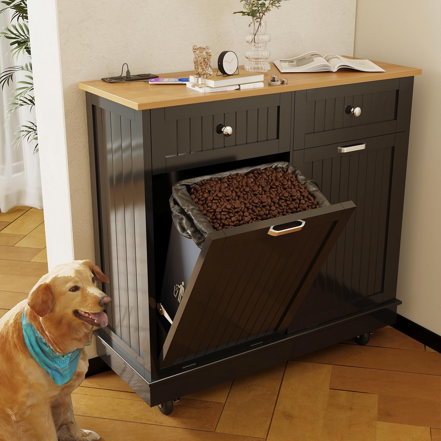 - Sturdy & Mobile Design: This tilt-out trash cabinet combines durability with convenience—engineered wood construction ensures stability, while four smooth wheels let you move it effortlessly between any space. The weighty base keeps it steady during use, and the wheels lock in place to prevent accidental shifts—no more messy spills even with curious pets around