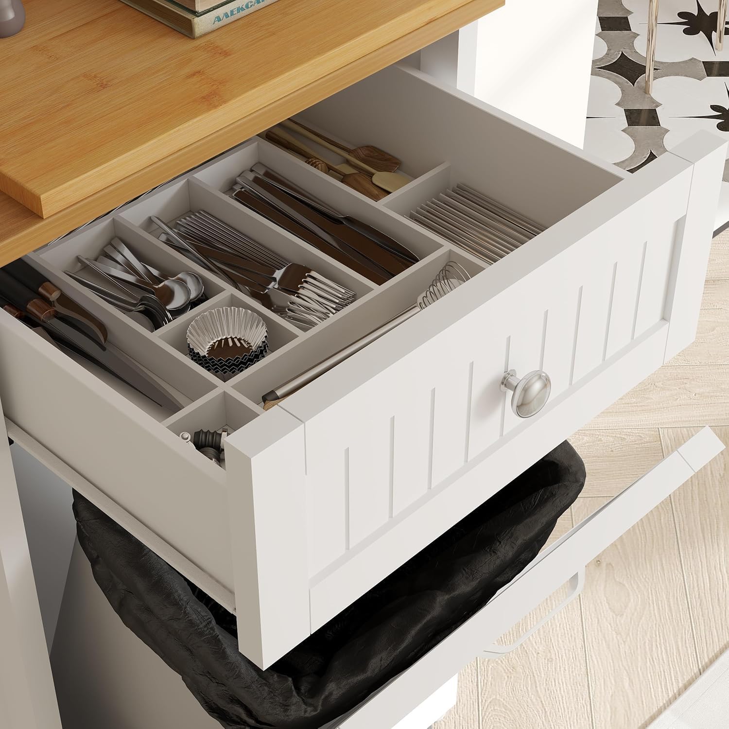- Hide Mess, Reveal Style: Tired of staring at a bulky trash bin? This hideaway trash can cabinet conceals odors and clutter behind its tilt-out door, keeping your kitchen or laundry room instantly tidy. Fits standard 10-gallon bags (dimensions: 20"L x 13.1"W x 36"H), yet looks sleek enough to complement farmhouse or modern decor