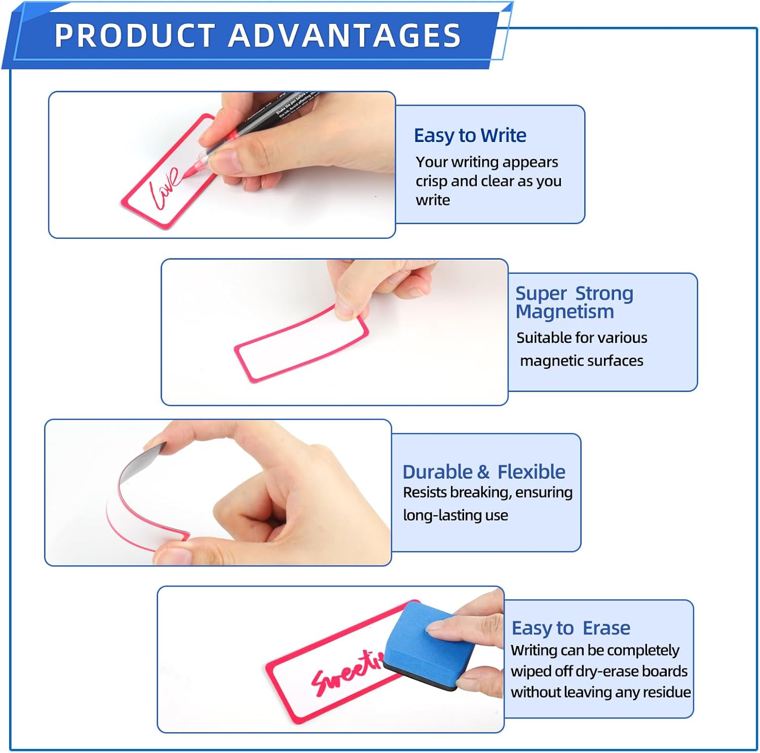 - Versatile Applications: These versatile magnetic name tags are not only practical tools for daily life and professional settings but also an ideal choice for teachers' instructional materials. They serve a wide range of applications, including scheduling, project organization, classroom management, price labeling, name identification, shelf marking, student locker labeling, and refrigerator reminders