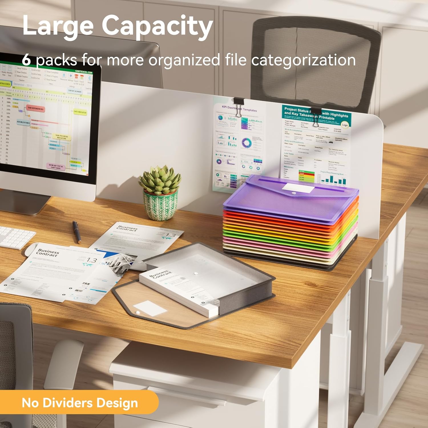 ABC life 8 Pack Plastic Expanding File Folder, Folders for Documents with Snap Closure, Colorful File Folder Organizer Holder, Transparent, Large Capacity, Fit Letter/A4 Size - Rainbow