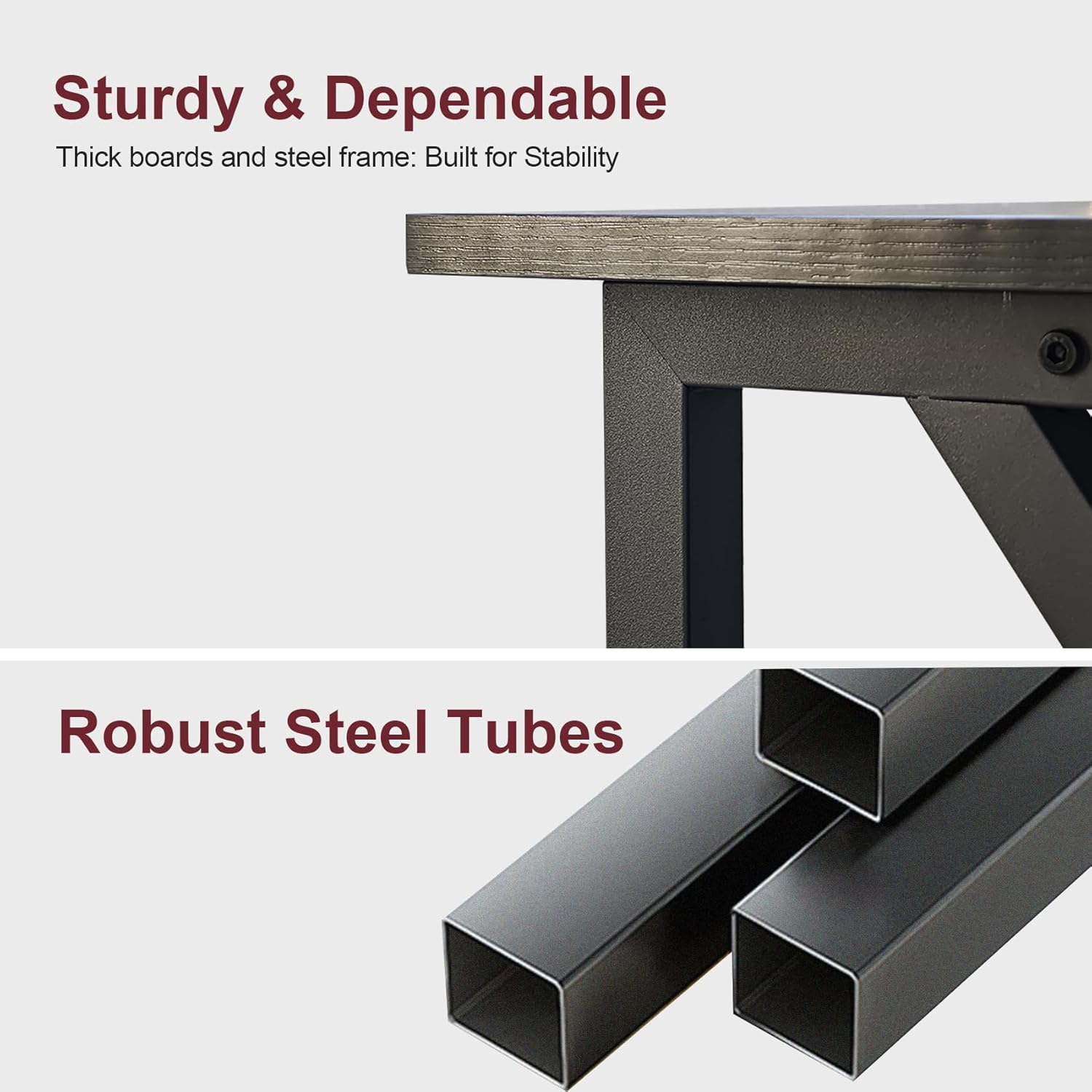 - 【Sturdy Construction】Every wood panel is reinforced with metal tubes below, plus X-shaped support brackets on both sides for stability. Made with 0.98-inch rust-resistant, wear-proof metal tubes and a whole piece of 15mm thick particleboard with a scratch-resistant surface, it’s sturdy enough for years of daily use.