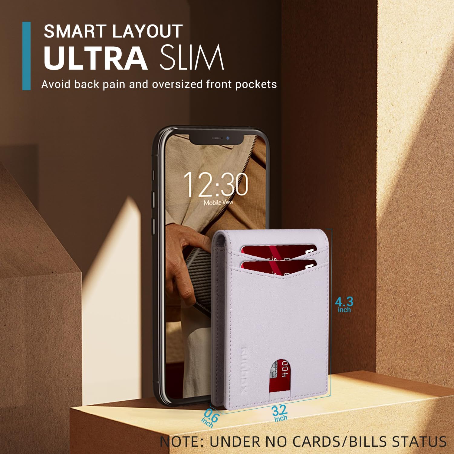 - Slim and thin wallet- This minimalist bifold wallet measures 4.3x3.2x0.6 inches and stores up to 15 cards. The thin wallet perfectly fits in your pocket and is well-suited for everyday carry.