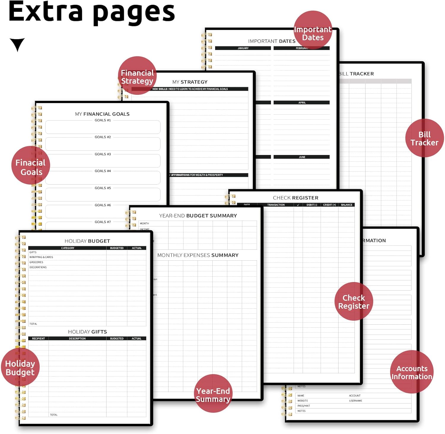 - Reliable and Convenient Design - Our monthly budget planner is designed for your convenience and built to last. The water-resistant cover protects against spills, while the elastic band keeps everything securely in place, and the dual-sided pocket provides extra storage. Experience a budget planner that combines practicality and durability.