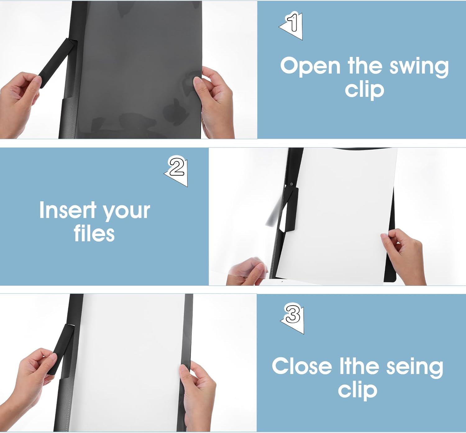 - Locking Clips Design: there are locking clips of the presentation folders for document, which is easy insertion of letter size paper; You can close locking clips gently; It can grip inside pages for saving reports and displaying your work without punching holes
