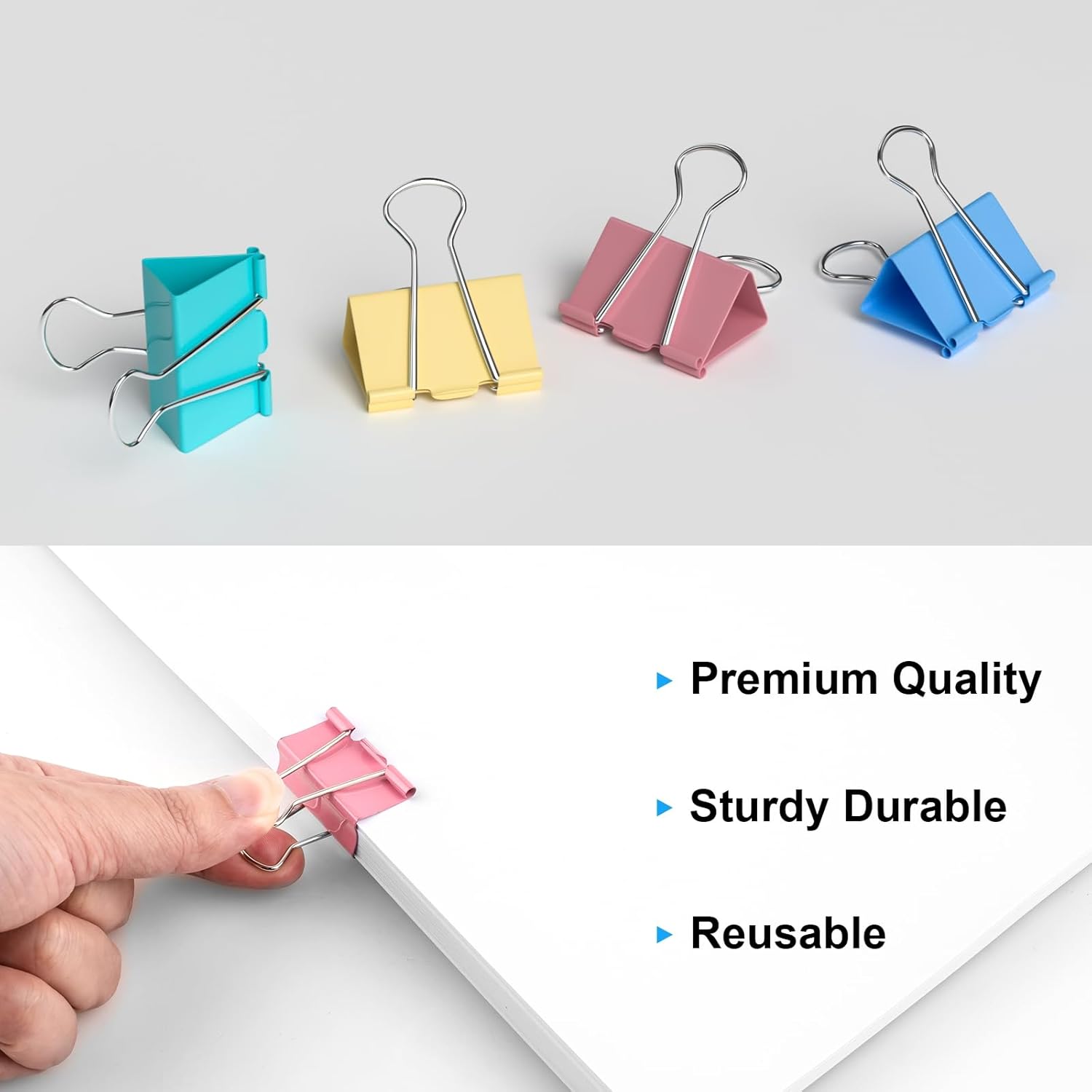 - Versatile Colored Binder Clips Assorted Sizes: Perfect for food bags, clothes, or office files. Ideal for home, school, or work. These metal paper clamps handle any organizing challenge