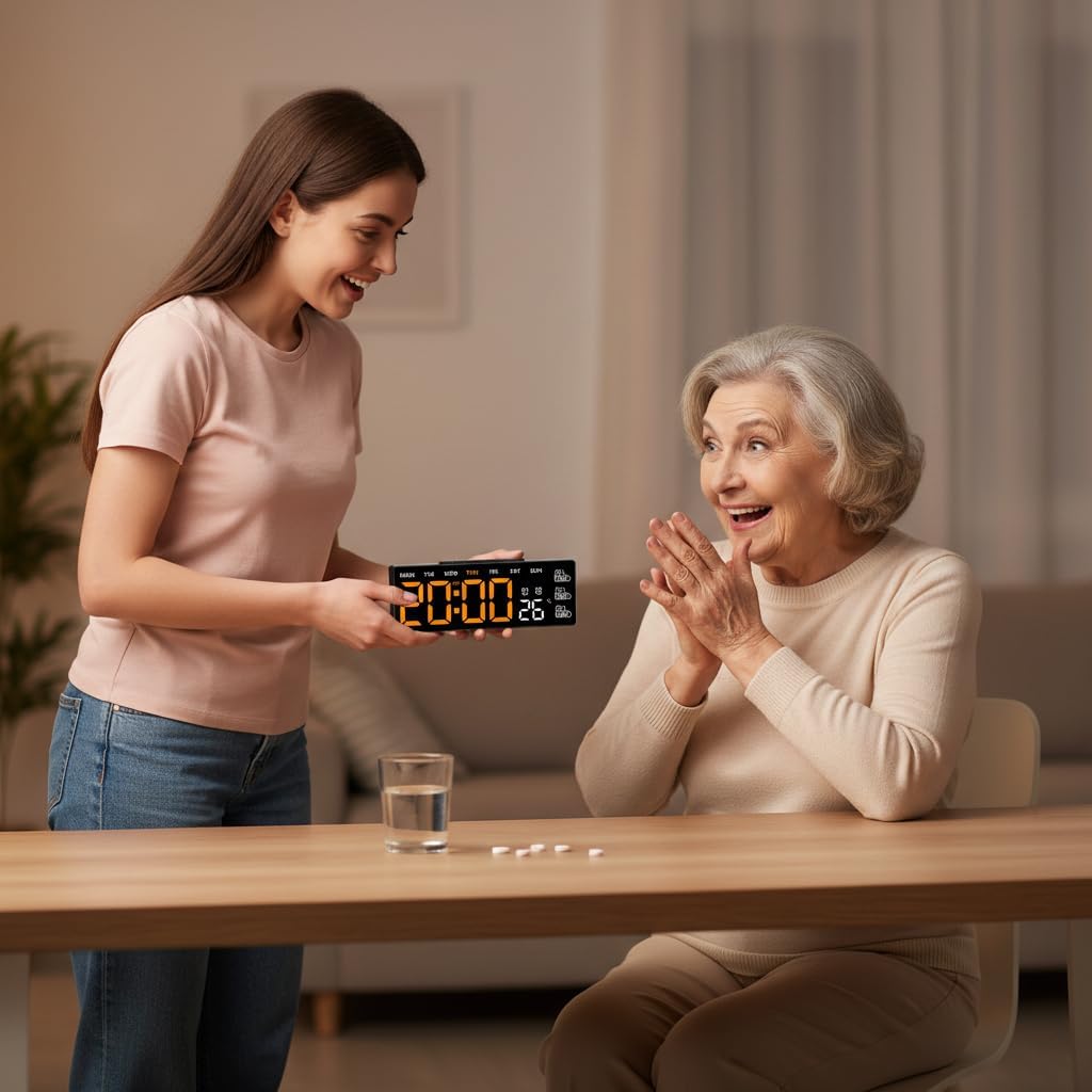 - Practical for Daily Use – With its clear screen, practical reminders, and modern design, this LED wall clock fits perfectly in bedrooms, kitchens, and living rooms.