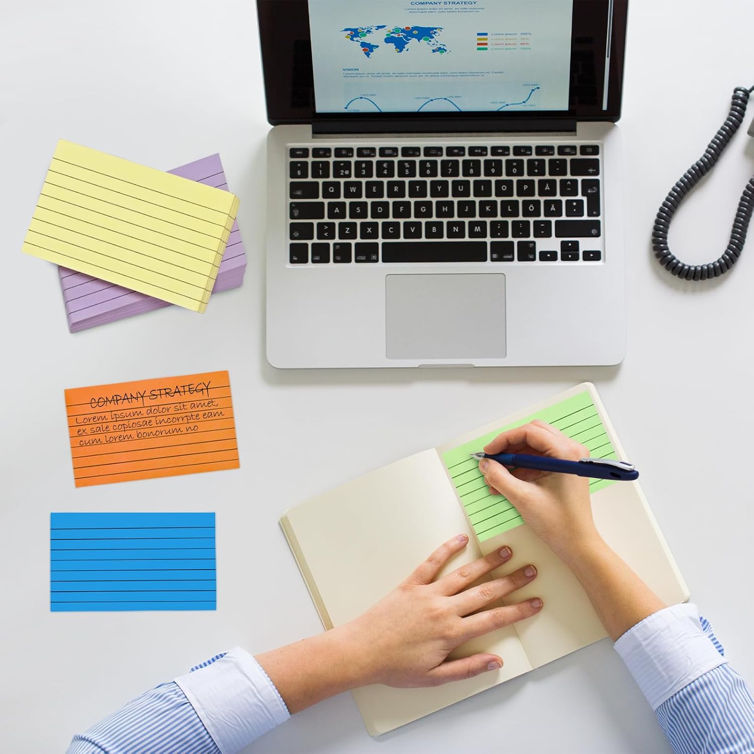- STANDARD SIZE: Each colored index card measures 3 x 5 inches, these note cards 3x5 are easy to write on using pens or pencils, handy size for easy to carry and use, which can help you better classify and manage your information to maximize your productivity with these precision-cut notecards.