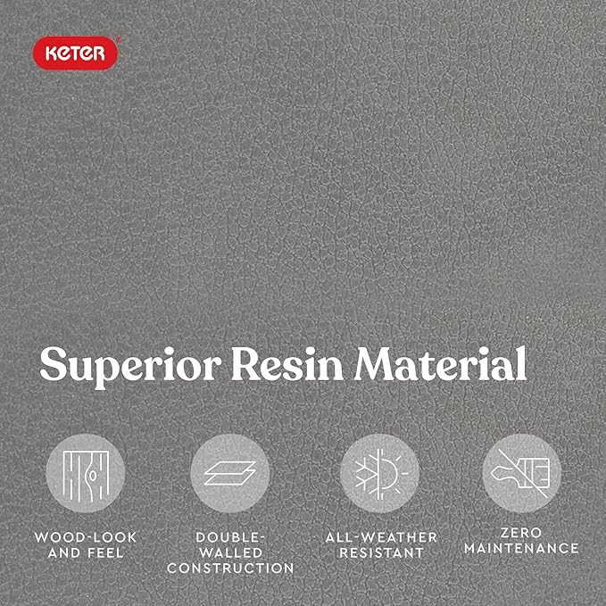 - RESIN CONSTRUCTION: It's made out of all weather-resistant resin with an appealing wood-look texture